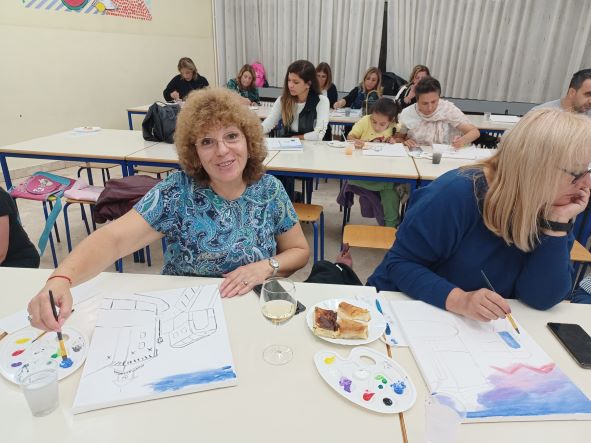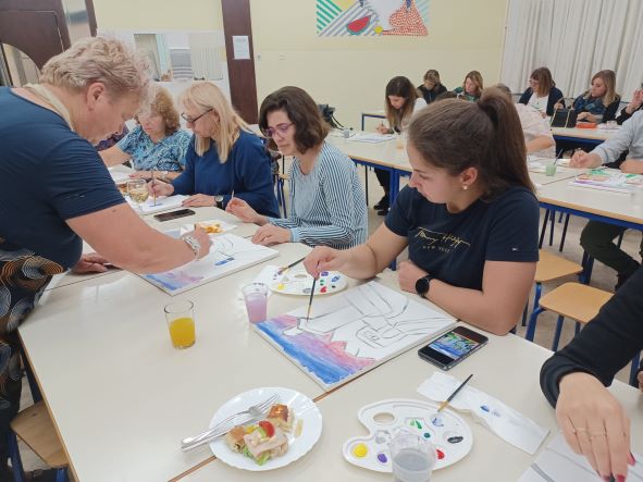 Izradili smo zajedničku razglednicu na temu NP Krka, održali radionicu slikanja zagrebačkog motiva (kula Lotrščak) te radionicu šivanja i izrade