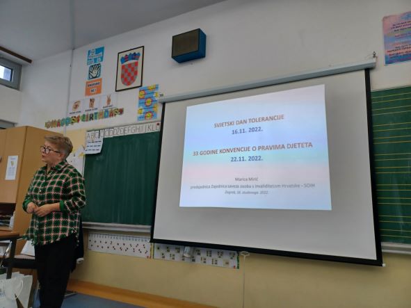 U srijedu 16. studenog 2022. drugašiće je posjetila gospođa Marica Mirić, predsjednica Zajednice saveza osoba s invaliditetom Hrvatske i održala nam je radionicu o toleranciji u prihvaćanju različitosti i dječjim pravima, u sklopu Međunarodnog dana tolerancije.