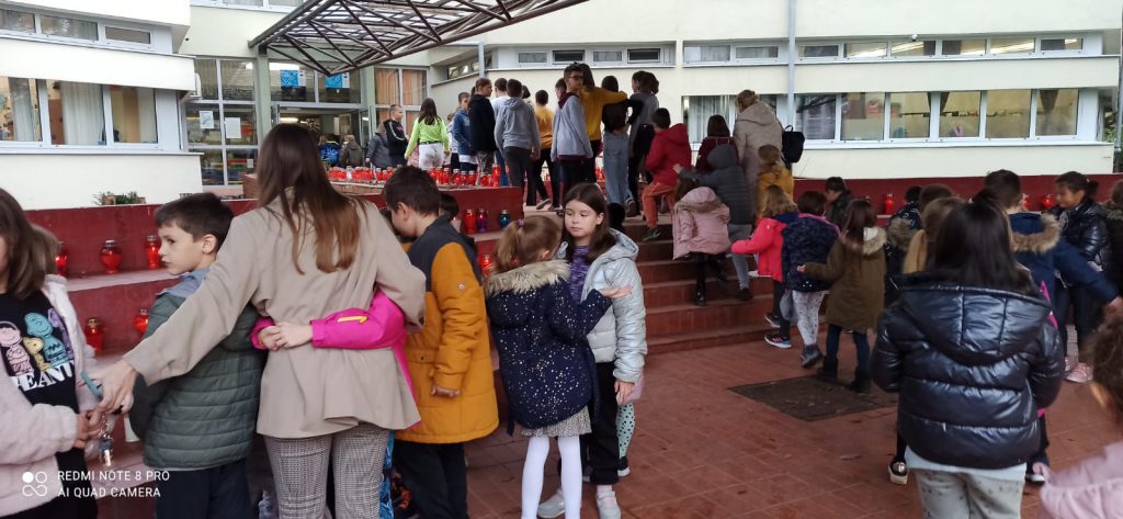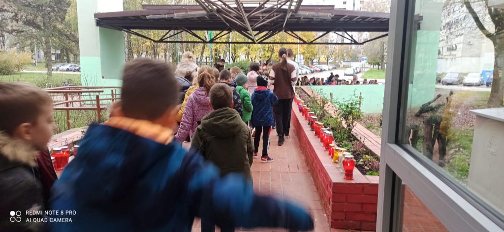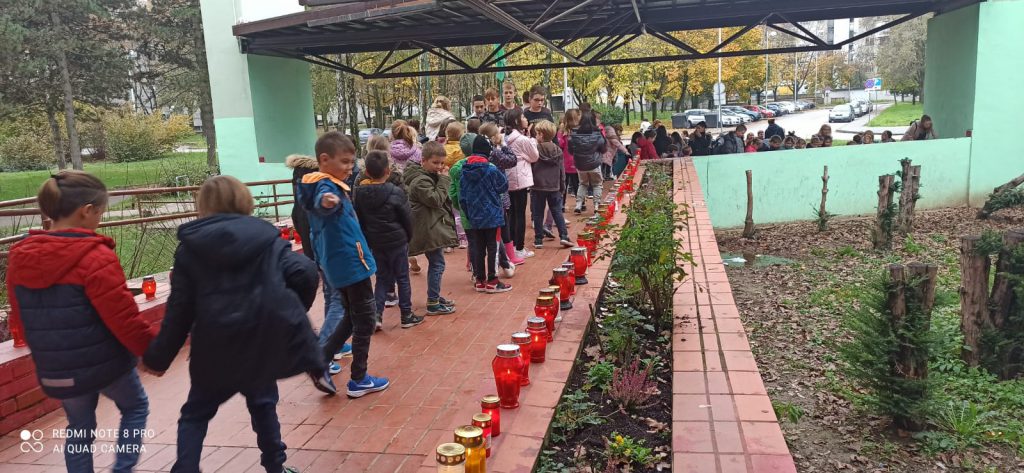 Potom su se predstavnici učenika svih razrednih odjela u tihoj koloni zaputili na školsko dvorište gdje su zapalili svijeće i minutom šutnje odali počast svim stradalima u Domovinskom ratu.