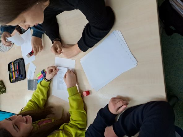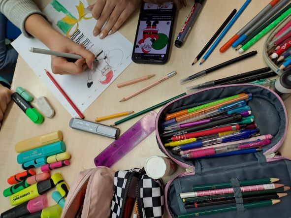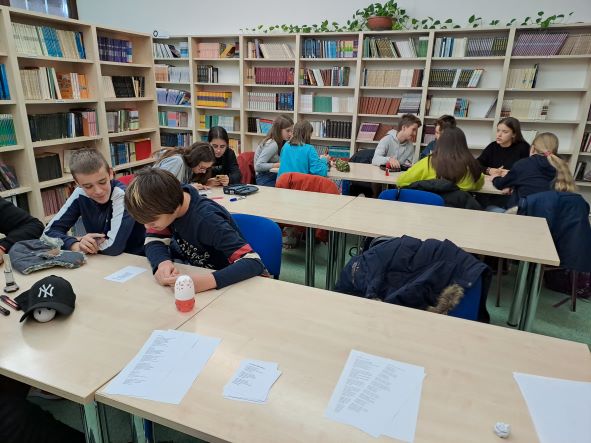 Knjižničarka Daria Pestić i učiteljica Ana Vukušić Mahin su za učenike priredile aktivnost Blackout poeziju s poznatim božićnim pjesmama.