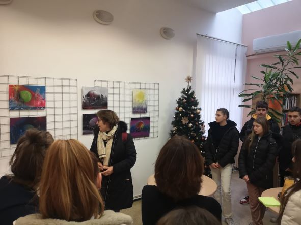 Učenici 8.a razreda u petak 2. prosinca 2022. posjetili su samostalnu izložbu svoga prijatelja iz razreda Ivana Štembergera. Izložba se održavala u KGZ Dugave od 7. studenog do 3. prosinca 2022.