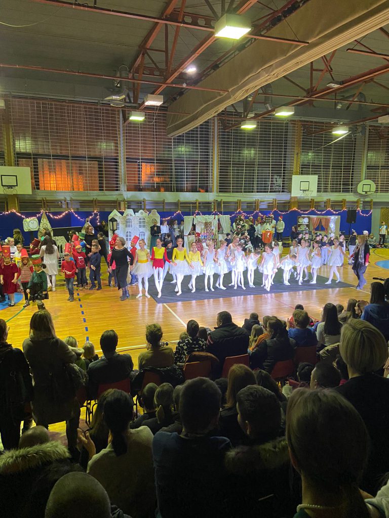 Dvjestotinjak učenika naše škole sa svojim učiteljicama i ravnateljicom na čelu u nekoliko prosinačkih tjedana postavilo je ovu zimsku bajku na pozornicu koja je ovog puta bila u školskoj dvorani. Iako se na samom početku sve činilo kao da neće uspjeti, vrijedne ruke izradile su kostime i scenografiju, naučili su se tekstovi i plesni koraci, postigla se izvrsna suradnja između malih i velikih učenika, a učiteljice su postale pravi umjetnički tim dostojan i velikog teatra.