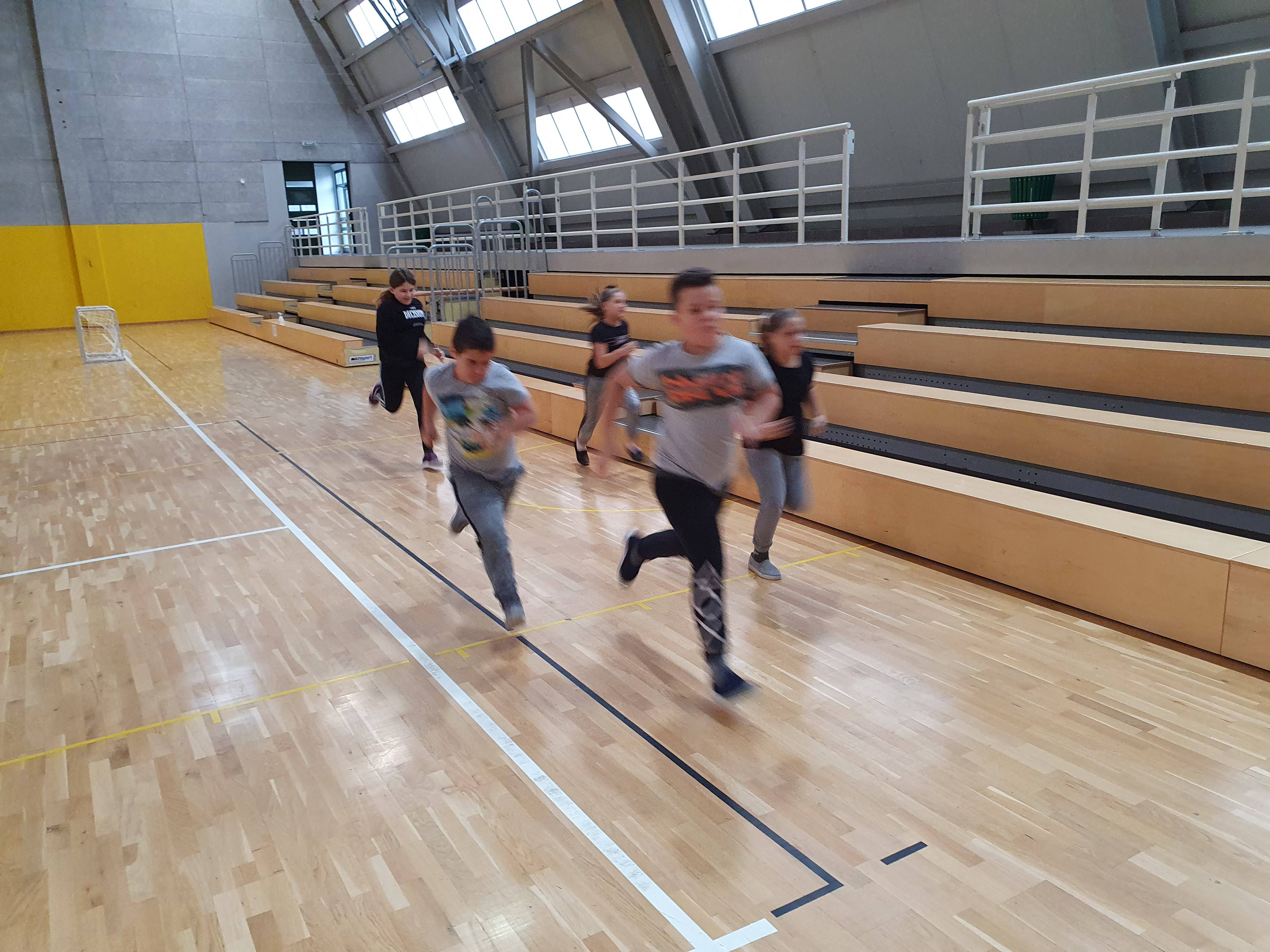 Prvi takav izazov je sportski izazov - trčanje u kojem će se mjeriti tko će više pretrčati na zadanom poligonu. Poligon je dužine 25 metara, a učenici trče ukupno 5 minute te im se mjeri pretrčana udaljenost.