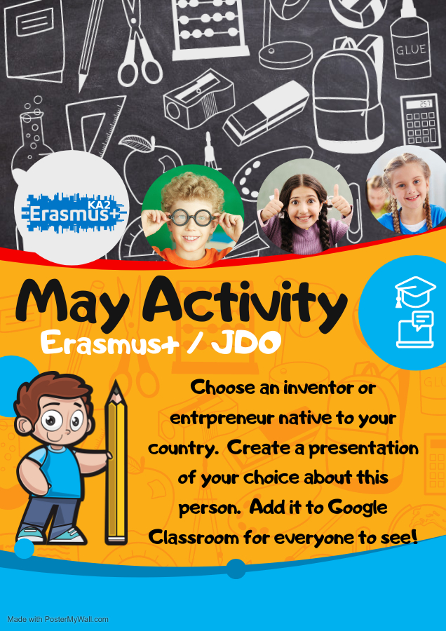 Prva aktivnost za učenike u područje STEAM-a bila je istražiti poznate izmuitelje u svojim zemljama. Naši učenici su se odlučili za 2 po njima najznačajnija izmumitelja - Nikolu Teslu i Slavoljuba Penkalu - te o njima izradili Power Point prezentacije koje se mogu pogledati u privitku. Svoja istraživanja su podjelili s prijateljima iz partnerskih zemalja putem Google učionice.