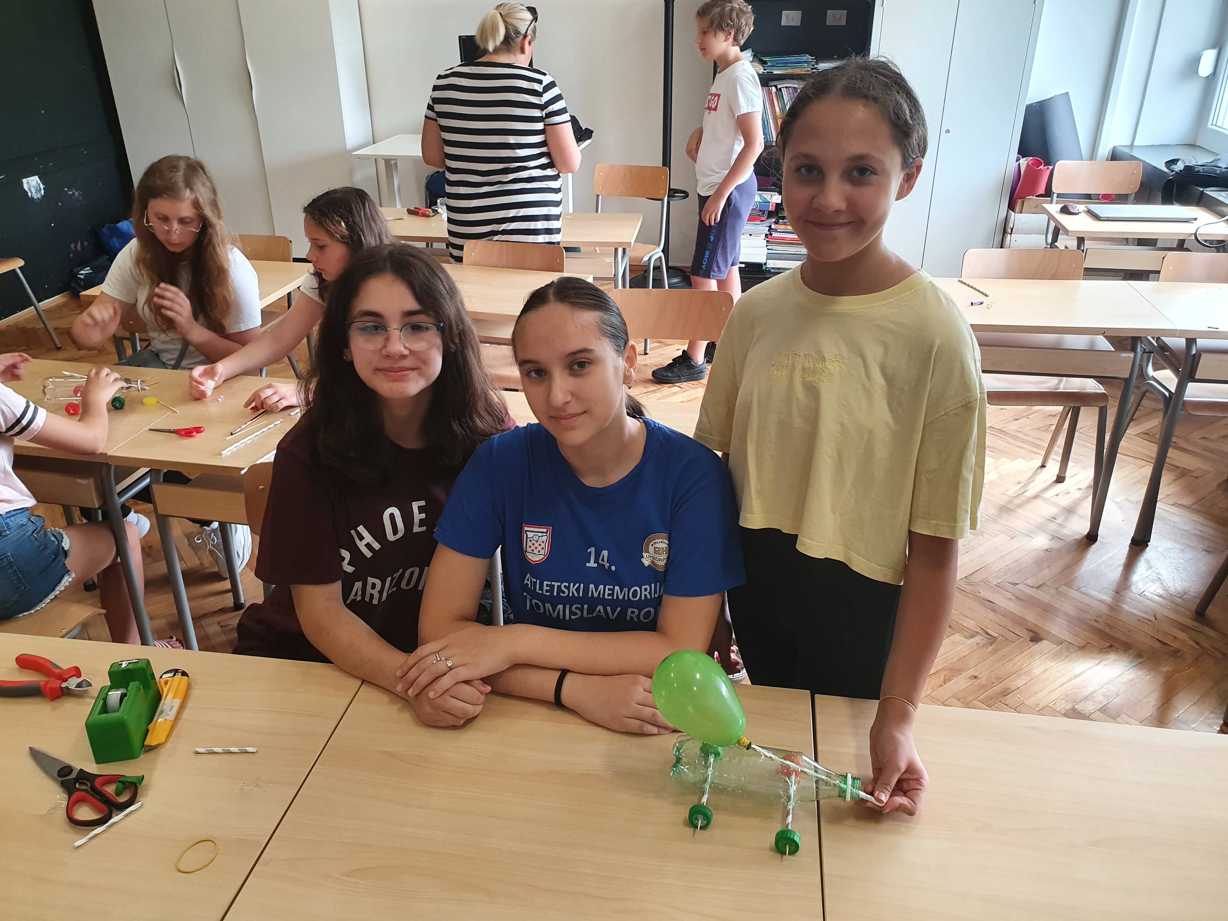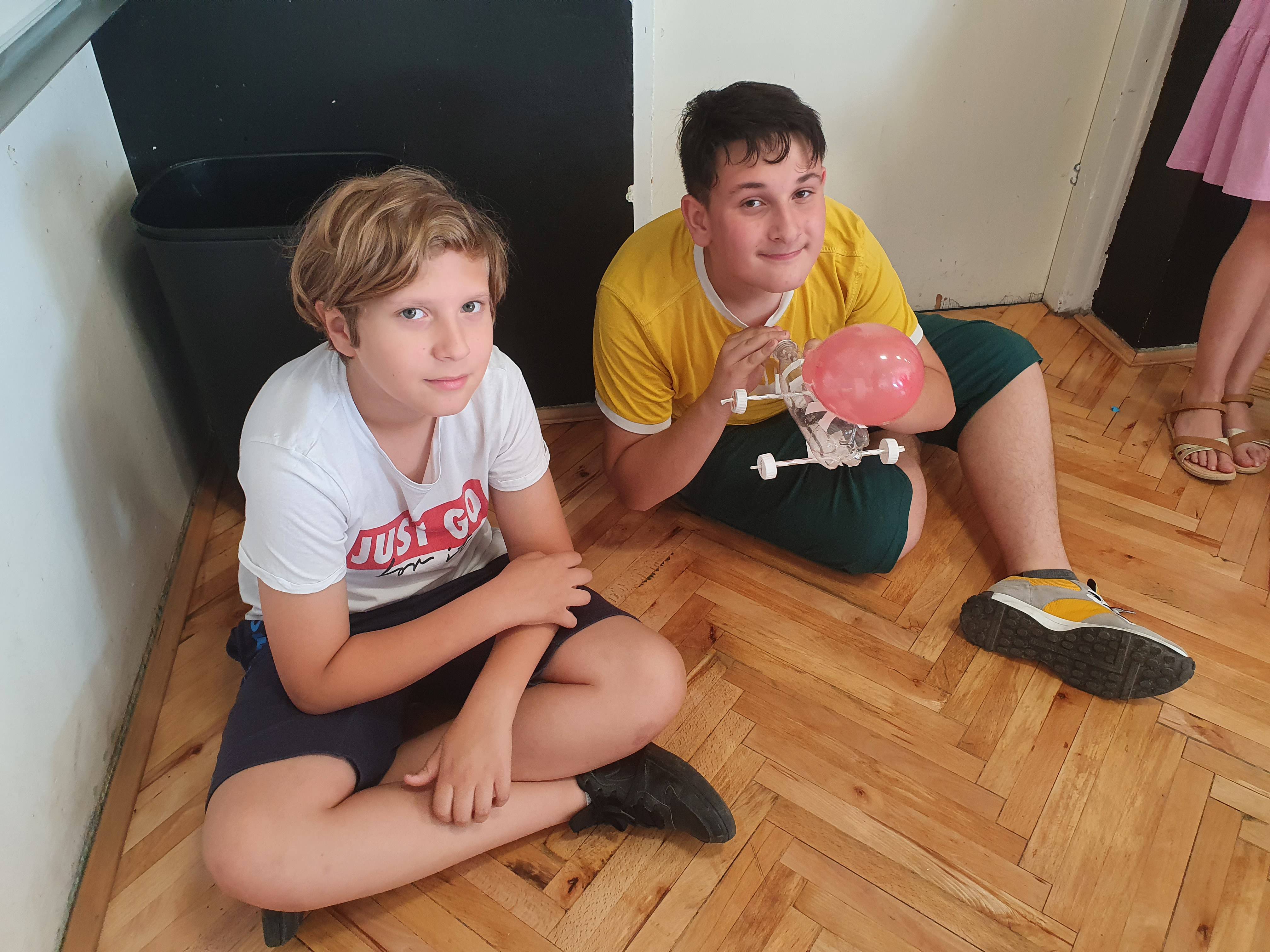 U četvrtoj projektnoj aktivnosti učenici su trebali izraditi autić kojeg poreće pogon balona. Učenici su trebali osmisliti na koji način konstruirati autić kako bi putem pogona na balom mogao što dalje prijeći odjednom. Za izradu su na raspolaganju imali plastićnu bocu, čepove, papirnate slamke, balone, drvene štapiće, ljepivu traku, škare i ravnalo. Po završetku izrade autića održana je utrka u kojoj smo dobili pobjednika.