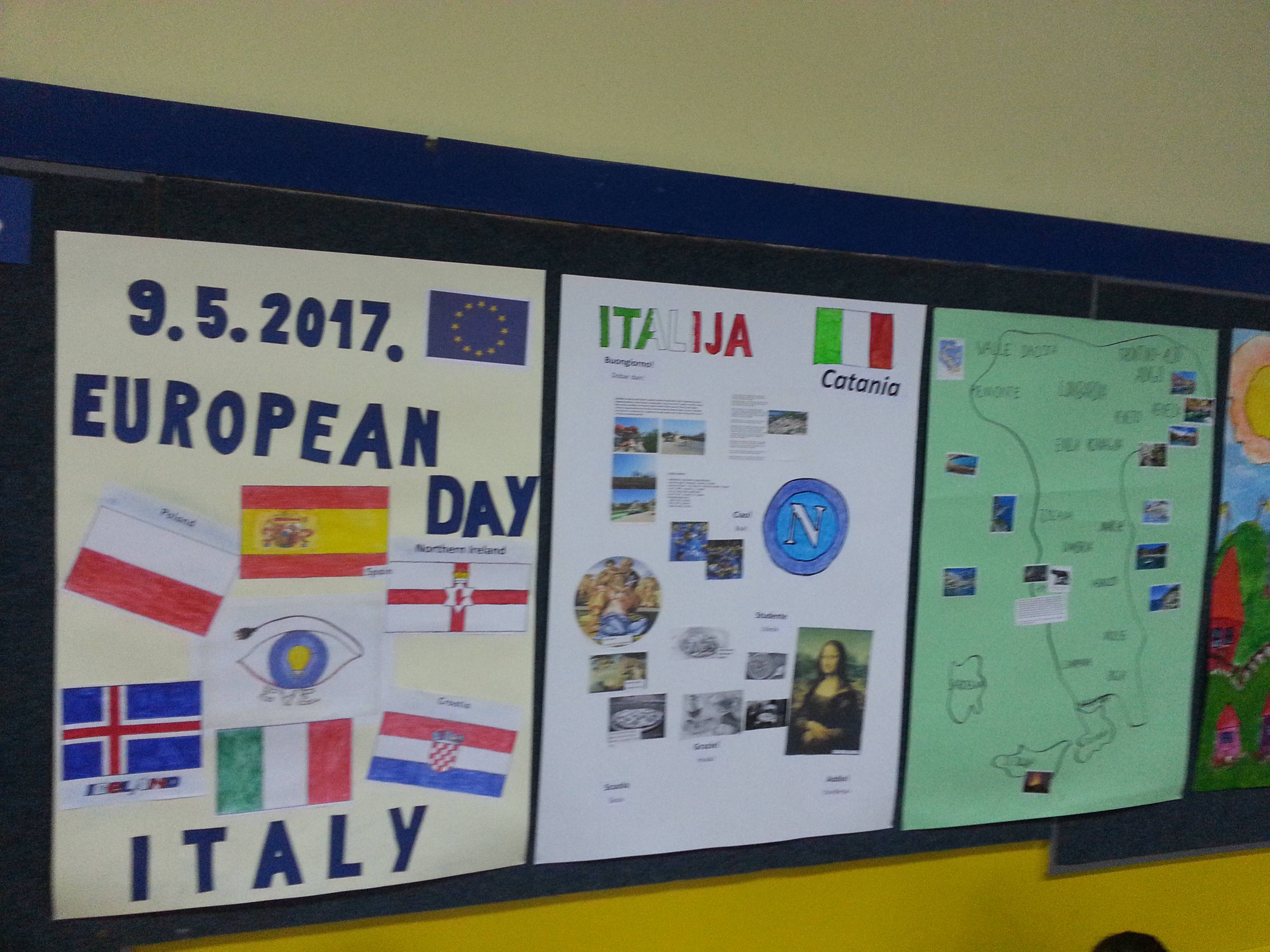 Students and teachers participating in the EYE project celebrated the European day as part of project activities planned for the first year. Students learned a lot of interesting information about European Union, our partner schools and also countires they come from. They also learned a few words in partner country languages and a children song. At the end all the students watched the movies about the towns our partner school come from. To present to other students, parents and local comunity what they have learned they made posters with all important information.