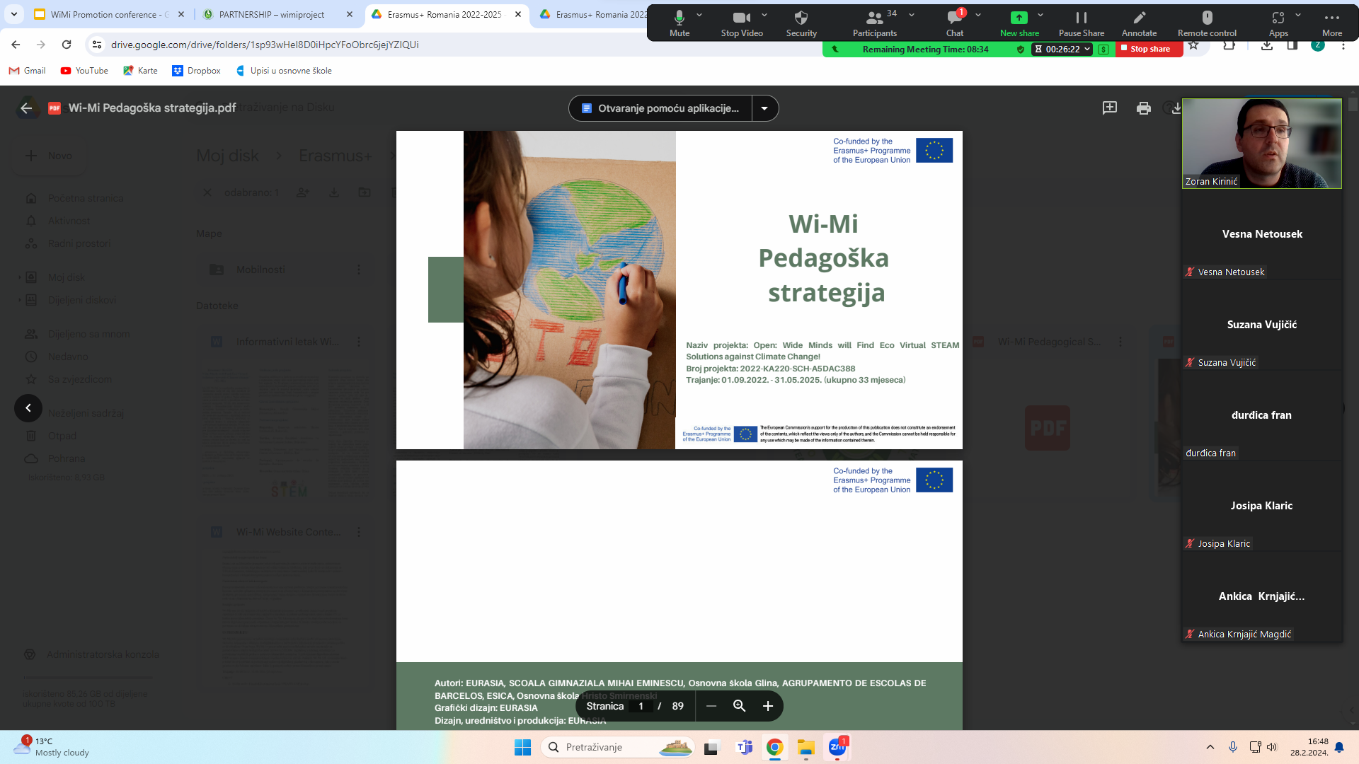 Završna aktivnost tijekom Radmog paketa 2 bila je promotivna online konferencija koju su održali svi partneri. Naša škola održala je promotivnu online konferenciju 28. veljače 2024., a prezentaciju je izradio i održao ravnatelj škole Zoran Kirinić. Na konferenciji su predstavljeni svi materijali izrađeni unutar Radnog paketa 1, a sudjelovalo je 35 učitelja iz više osnovnih i srednjih škola.