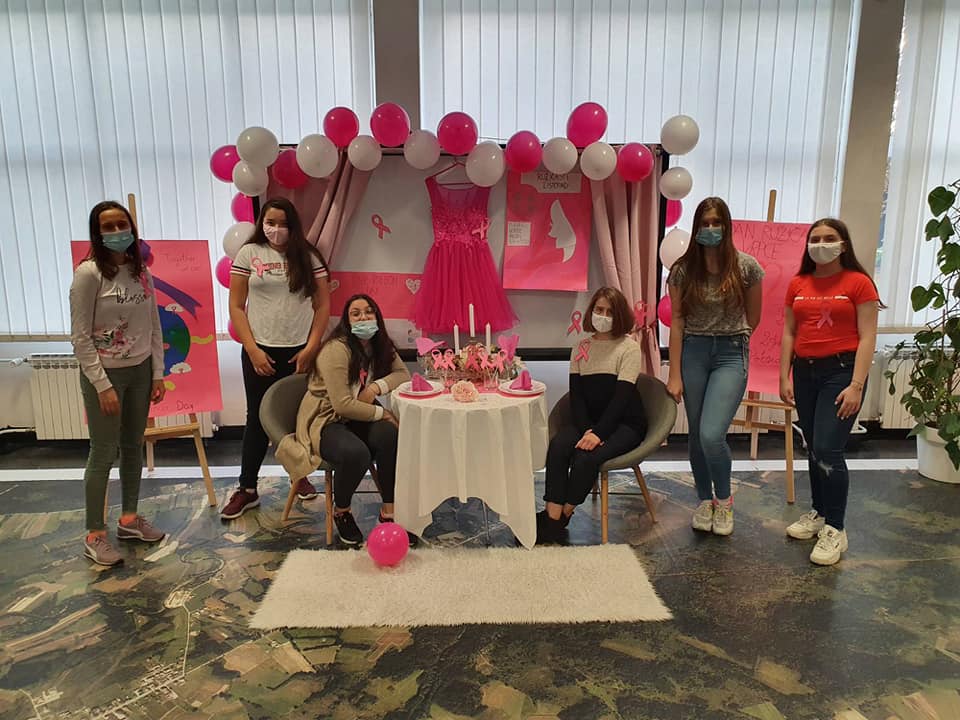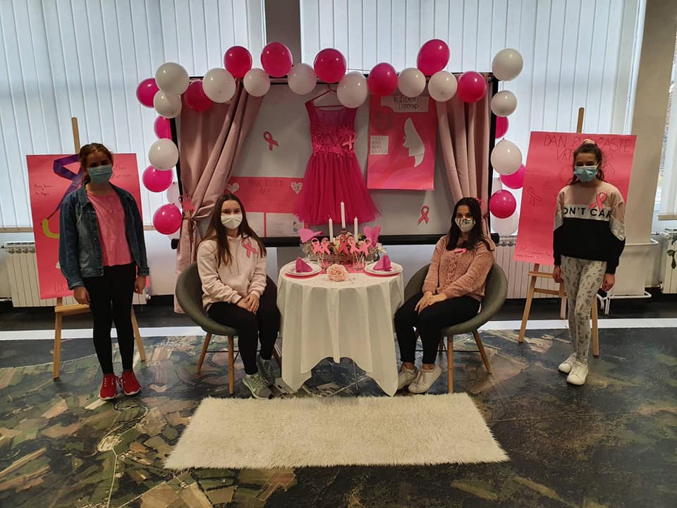 Svoj skroman doprinos obilježavanju DANA RUŽIČASTE VRPCE možete vidjeti i u holu naše škole gdje su vrijedne ruke naših učenica 8.a i 8.b razreda uz pomoć učiteljice Željke Cerjak uredile kutak posvećen ženama oboljelima od raka dojke.