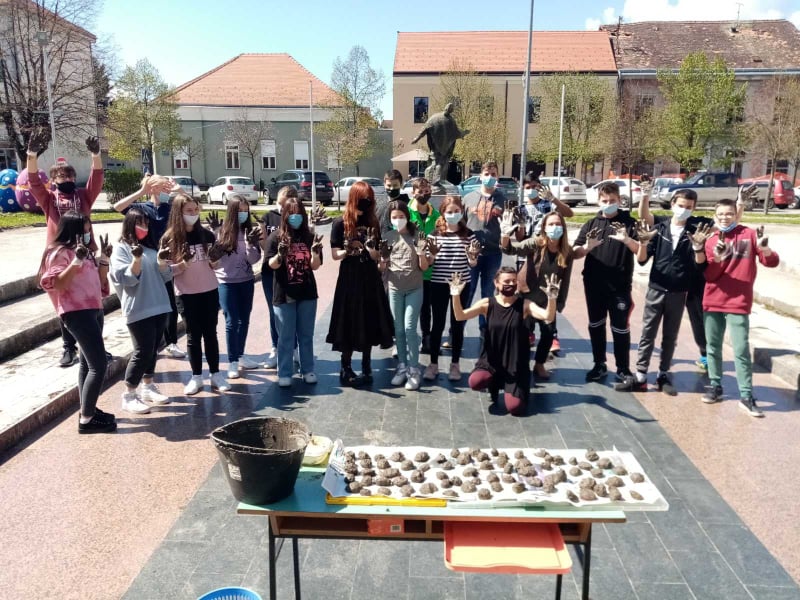 U sklopu projekta Biljna banka Banovine - Razmjena sjemenja učenici 8.b razreda sudjelovali su danas u Knjižnici i čitaonici Glina u razmjeni sjemenja i izradi sadnih bombica.