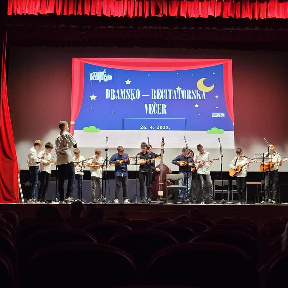 Povodom manifestacije Noć knjige, u srijedu 26. travnja 2023. u Hrvatskom domu Glina, a u organizaciji Knjižnice i čitaonice Glina održala se dramsko - recitatorska večer na kojoj je sudjelovala i naša glazbeno-dramsko-scenska skupina pod mentorstvom učitelja Marija Ožakovića. Učenici su izveli predstavu s ovogodišnjeg Lidrana Začarani tamburaš i to vrlo uspješno što je potvrdio i veliki pljesak publike.