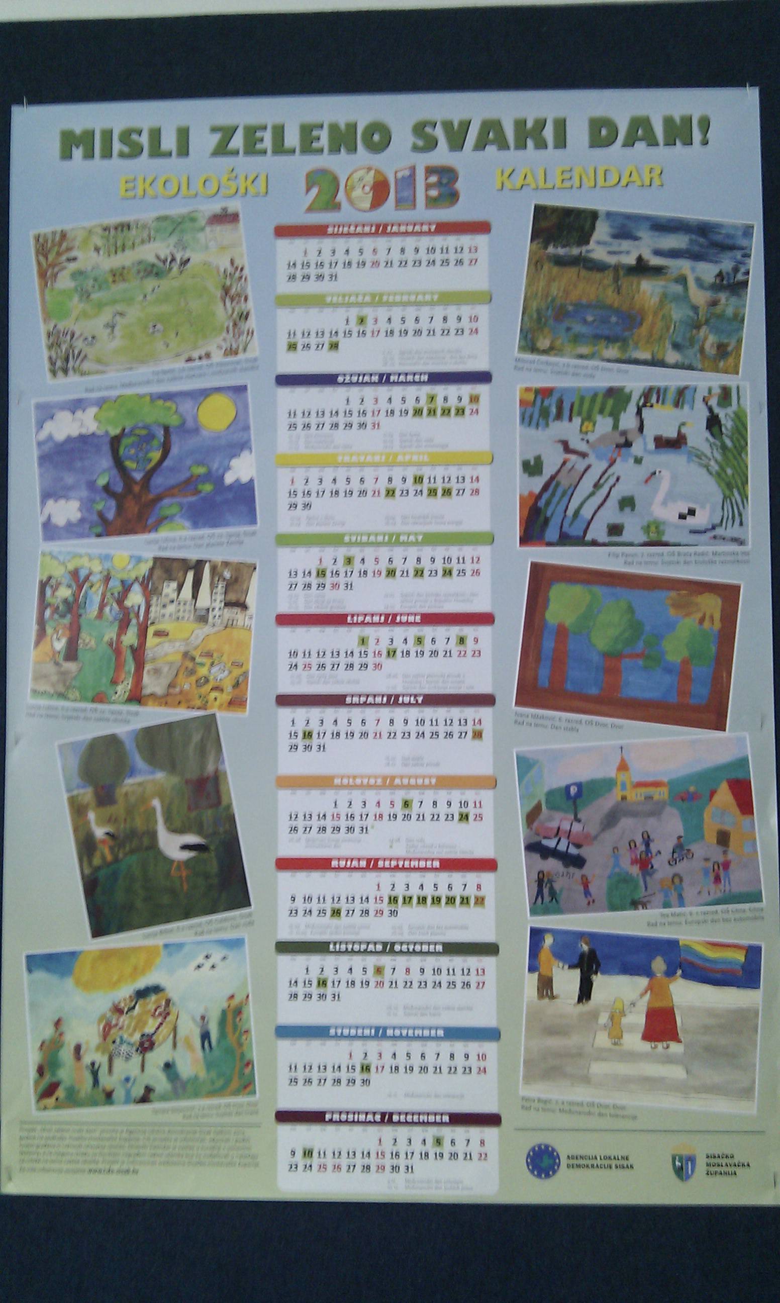 Kandidirati su se mogli eko crteži učenika petih, šestih i sedmih razreda. Naša škola sudjelovala je s 5 crteža od kojih je odabran 1 crtež koji će se nalaziti na ekološkom kalendaru i straničniku. To je crtež Europski dan bez automobila, a napravila ga je Tea Matić učenica 6.c razreda. Tea je nagrađena prigodnim poklon bonom.