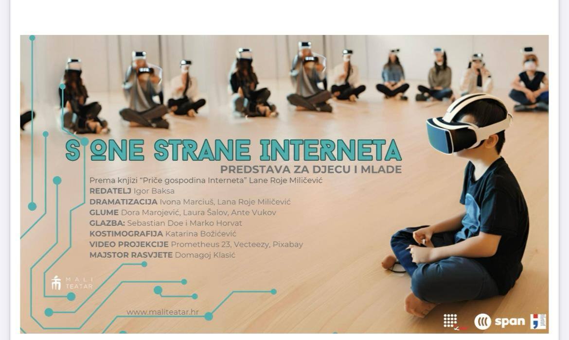 Učenici od 5. do 7.razreda pogledali su 23.travnja 2025. u Hrvatskom domu Glina kazališnu predstavu S one strane interneta. Predstava se bavi temom opasnosti s kojima se djeca i mladi susreću svakodnevno u digitalnom svijetu.