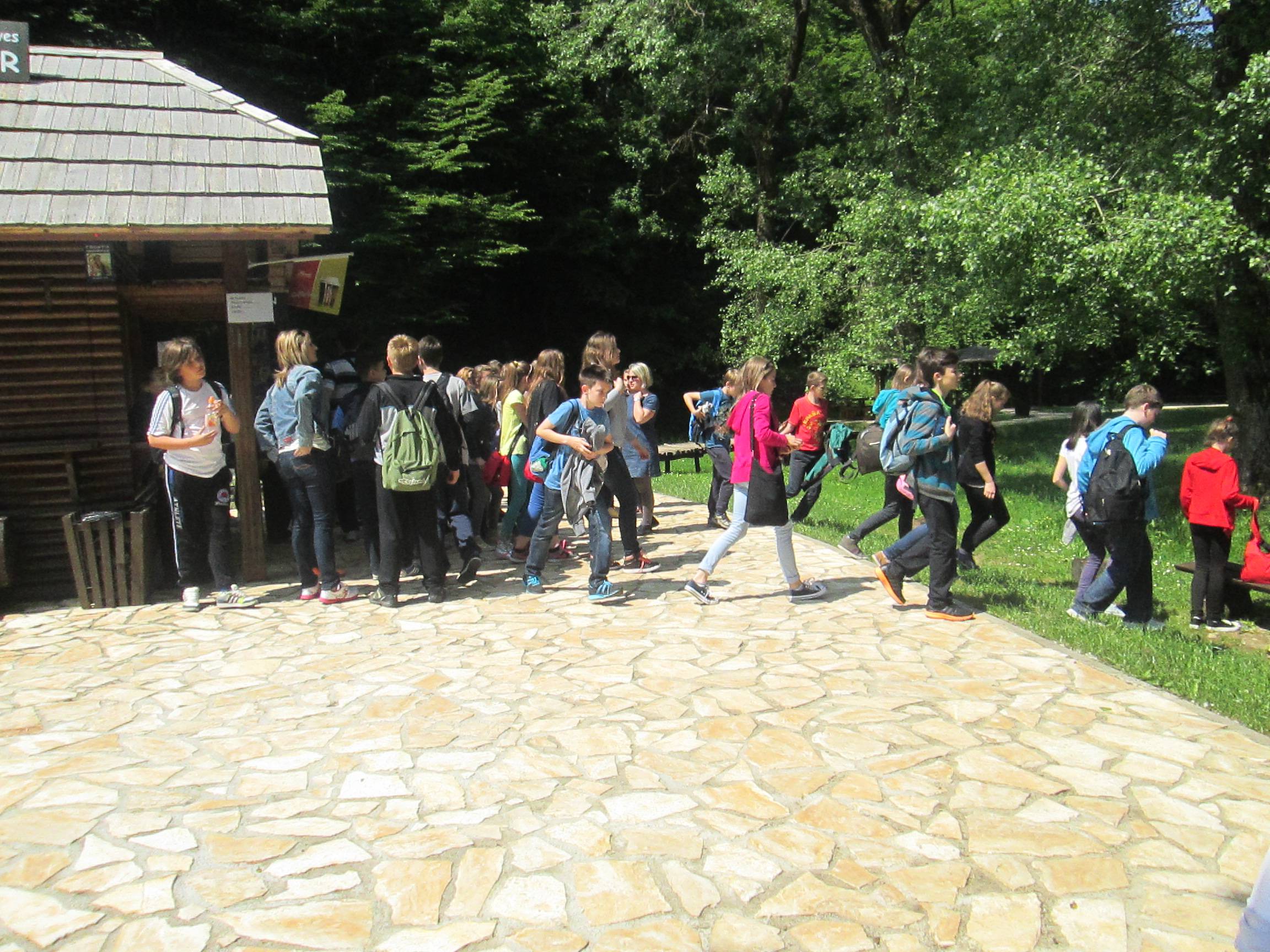 Stali smo kod hotela '' Mirjana'' i tamo pojeli sendviče. Prije nego što smo otišli na Plitvička jezera posjetili smo Baraćeve špilje. Na glavamo smo imali kacige te izgledali kao mali rudari. Na Plitvicama smo pogledali jedan film i krenuli u razgledavanje jezera. Bilo je jako lijepo. Vidjeli smo jata riba te prekrasne slapove. Dok smo čekali brod, kupili smo razglednice i pojeli sladolede. Nakon duge šetnje, vozili smo se vlakićem.