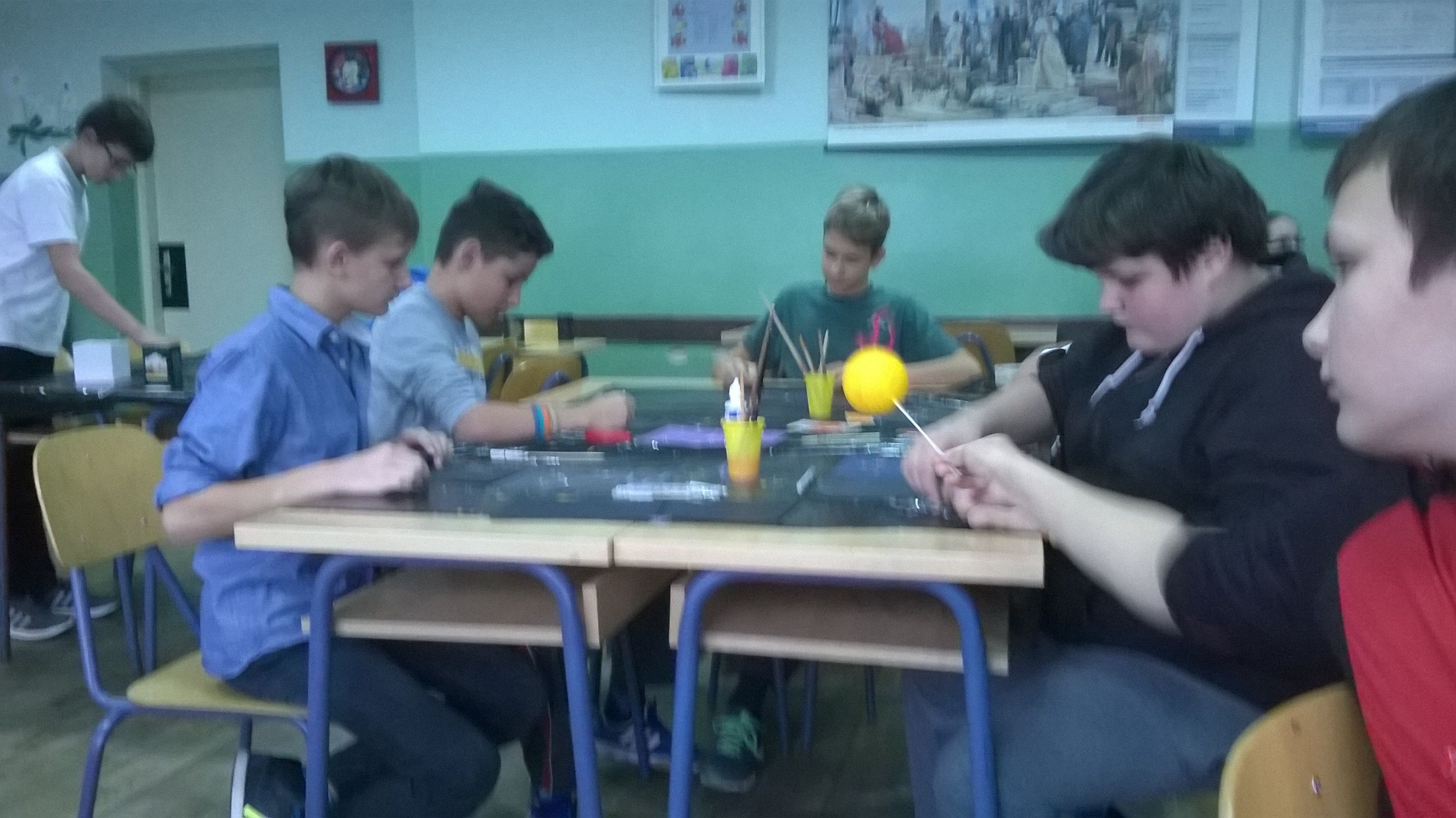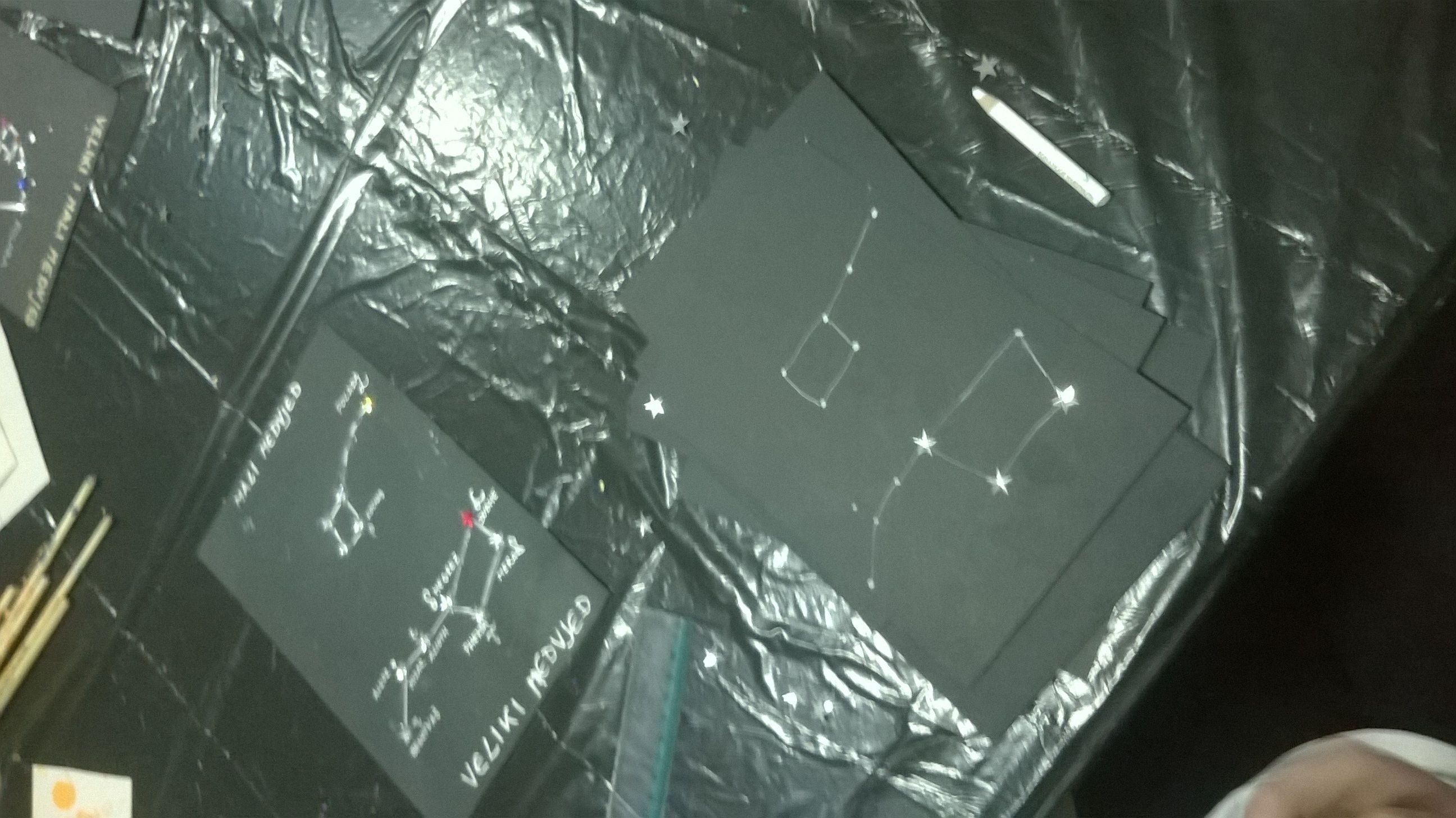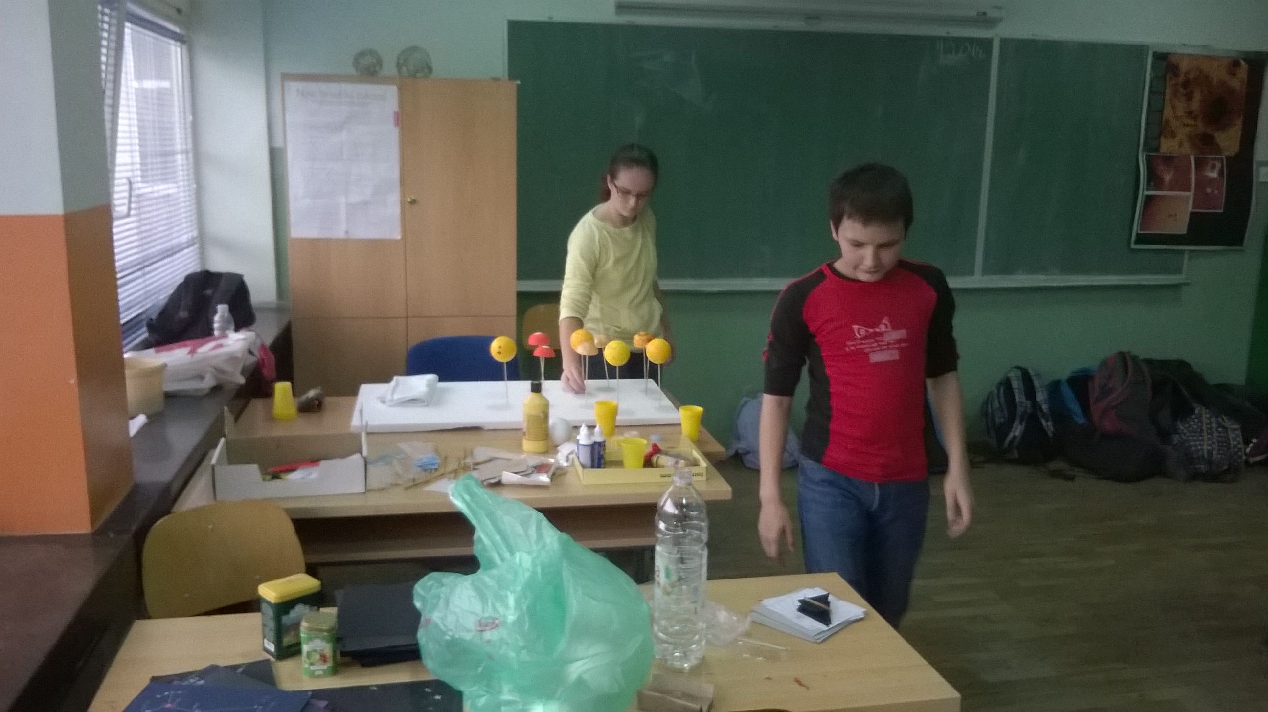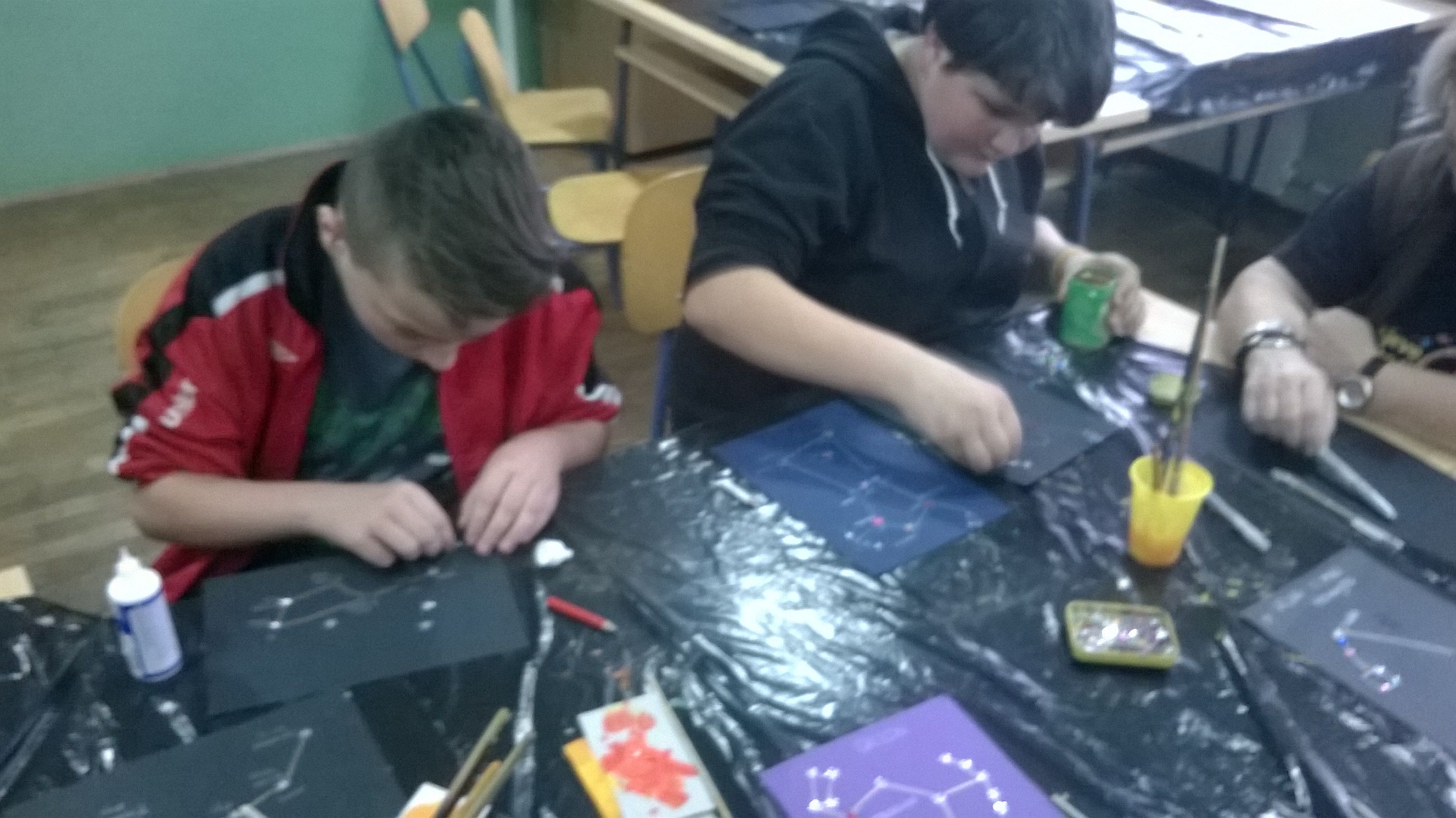 U radionicama su sudjelovali učenici: 4. c, 7. a i b, 8. a i b razreda. Bili su podijeljeni u 4 skupine, a svaka je skupina imala svoj zadatak. Matematička skupina riješavala je astronomiju kroz matematičke zadatke. Ostale skupine astronomiju provode kroz likovne zadatke. Likovne skupine rade planete od stiropora i papira.
