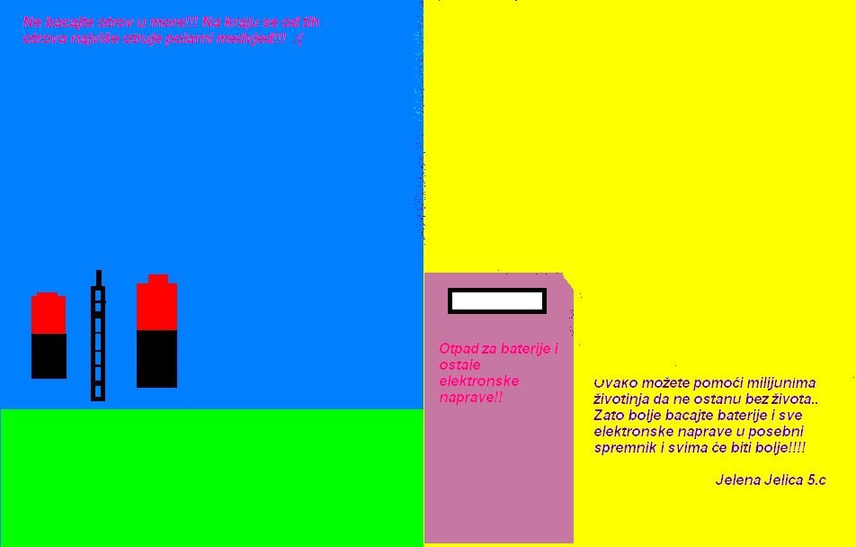 Učenici 5. a, b, c razreda u programu Paint izradili su crteže koji upućuju na prihvatljivo ponašanje u prirodi i koje doprinosi zaštiti čovjekova okoliša. Na taj način obrađena je tema iz Nastavnog plana i programa GOO. Cilj je bio osvijestiti učenike za očuvanje okoliša i pokazati na postupke koji će doprinijeti zaštiti okoline u kojoj se učenici nalaze.