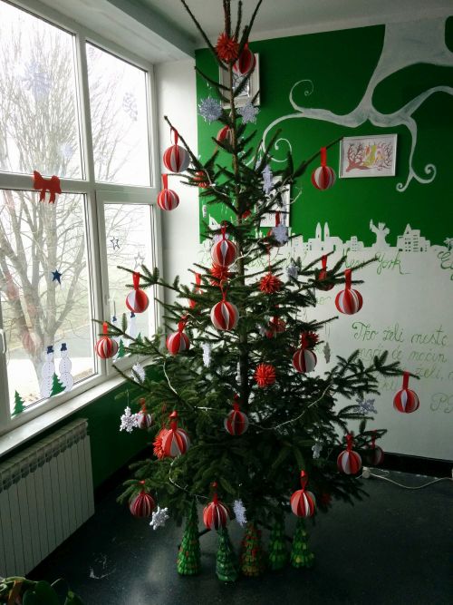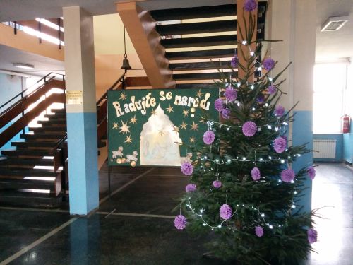 Hodnici su ukrašeni raznim dječjim crtežima božićnih motiva. Prozori su zablistali nasmiješenim snjegovićima. Veliki borovi su okićeni mnogobrojnim pažljivo izrađenim ukrasima. Djeca s osmijehom na licu izlaze iz škole te radosno čekaju povratak u nju.