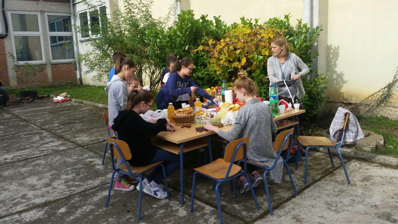 Na malom dvorištu naše škole osim u mirisu i okusu kestena uživali smo i u slasnim kolačima koje su pripremile majke i bake učenika. Zadovoljni i siti jedva čekamo iduću kestenijadu.