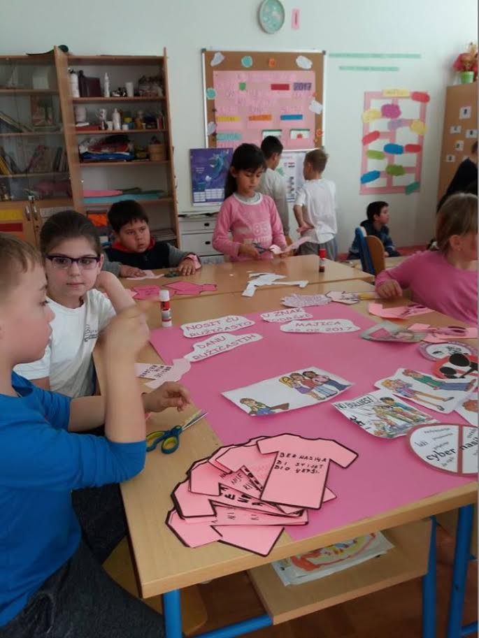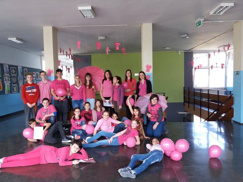 Klub učenika pomagača priključio se obilježavanju Dana ružičastih majica. U suradnji sa učenicima 8 razreda koji su pod mentorstvom učiteljice Vesne Netoušek pripremili prigodno predavanje te kratki film o vršnjačkom nasilju. Predstavnici kluba otplesali su koreografiju uz himnu Dana ružičastih majica "Život nije siv“. Dan ružičastih majica kroz prigodne radionice obilježili su i naši učenici razredne nastave sa svojim učiteljicama u POŠ Maja.
