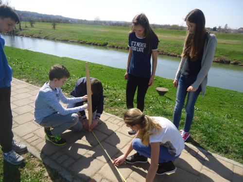 Na prvi dan proljeća, 21. ožujka u 12.00 h na ŠRC-u Banovac učenici 7. razreda: Vladimir Drakulić, Barbara Tkalčević, Ana Rom, Katja Dejanović, Matej Pentek i Marko Marović u pratnji učiteljica matematike Adele Kadrić Dobrenić i Gordane Ančić obavili su mjerenja za sudjelovanje u Eratostenovom eksperimentu.