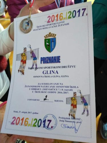 Učenice sedmih i osmih razreda sudjelovale su na županijskom natjecanju iz odbojke. Natjecanje je održano 27. ožujka u športskoj dvorani Brezovica u Sisku. Nakon uspješnog nastupa na međugradskim natjecanjima protiv Oš Topusko i Oš Dragutina Tadijanovića Petrinja izboren je nastup na županijskom natjecanju gdje su odbojkašice naše škole osvojile drugo mjesto od ukupno šest ekipa koje su sudjelovale. Našim curama i voditeljici Selmi Palić iskrene čestitke i puno sreće u daljnjem radu!