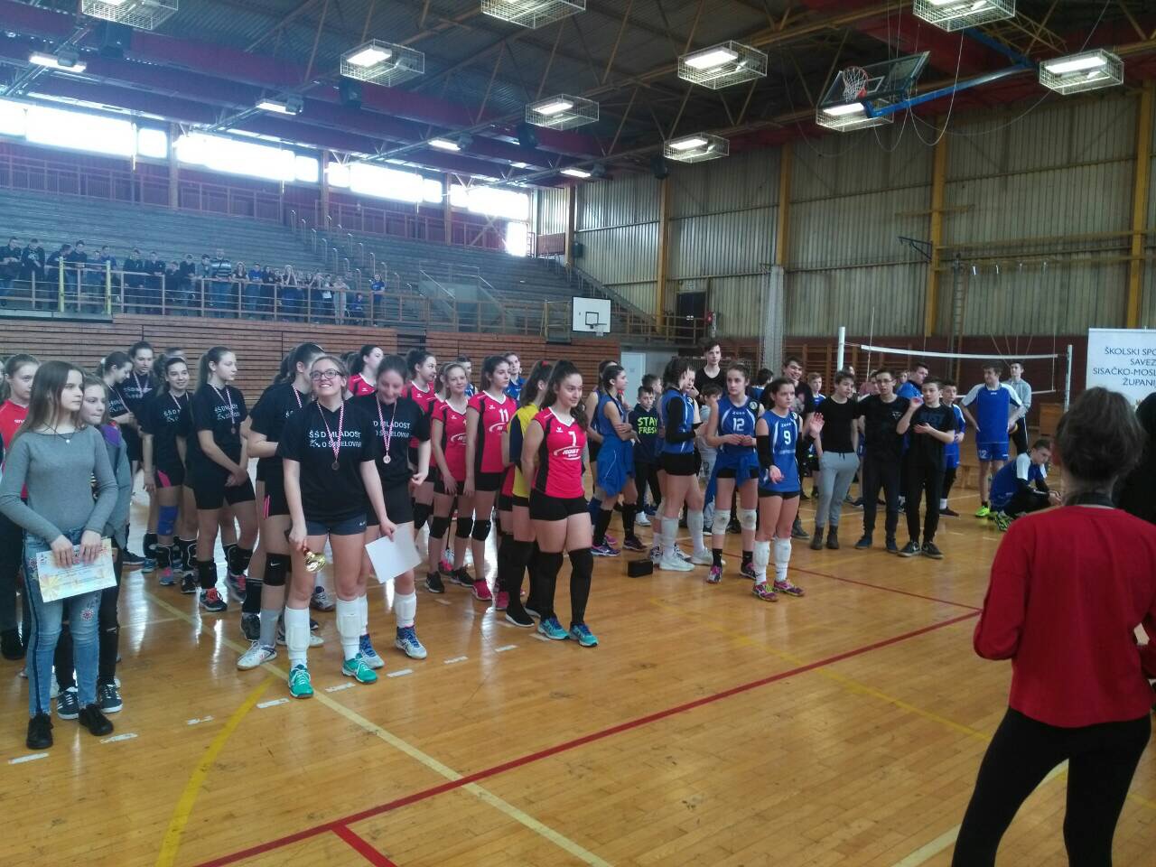 Nakon izborenog prvog mjesta na županijskom natjecanju u odbojci za djevojčice (7. i 8. razredi) naše odbojkašice sudjelovale su na poluzavršnici natjecanja održanog 16. ožujka u Sportskoj dvorani Brezovica u Sisku.