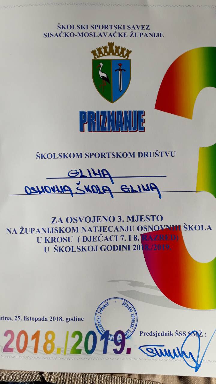 25. listopada učenici naše škole pod vodstvom profesorice Ive Matić i ove su godine sudjelovali u Kutini na županijskom natjecanju u krosu. Sudjelovali su učenici petih, šestih, sedmih i osmih razreda.