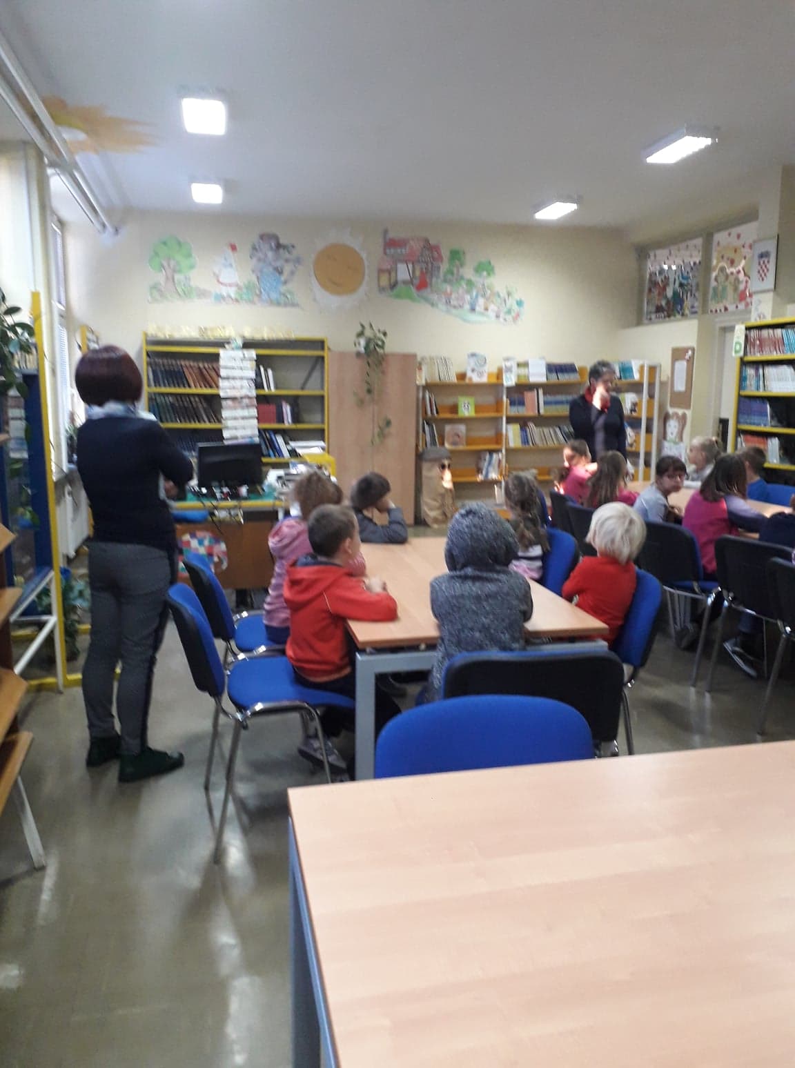 Učenici prvoga razreda proveli su jedan nastavni sat s knjižničarkom upoznavši školsku knjižnicu, način korištenja usluga i o ponašanju prema knjigama kroz priču „U knjižnici“.