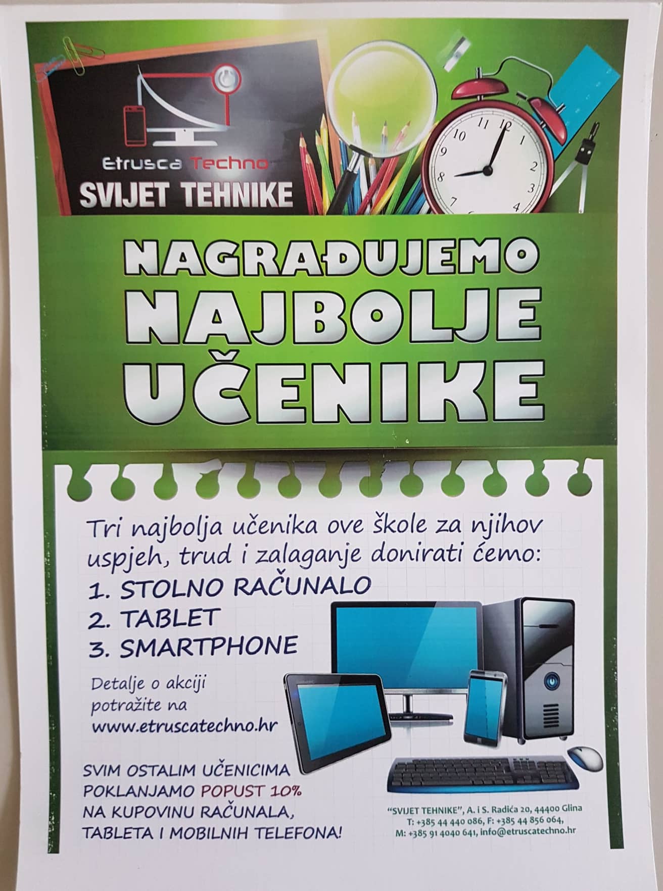 U suradnji s firmom Etrusca Techno tri najbolja učenika naše škole na kraju školske godine 2018./2019. bit će nagrađena bogatim nagradama. Svi učenici od 1. do 8.razreda mogu osvojiti ove vrijedne nagrade, a kriteriji po kojima će se odabrati nagrađeni bit će objavljeni uskoro.