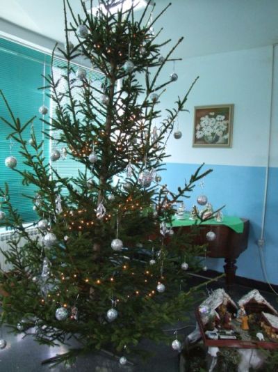 Likovna grupa predmetne nastave uz pomoć učiteljice likovne kulture Diane Cestarić ove je godine okitila bor na katu naše škole.