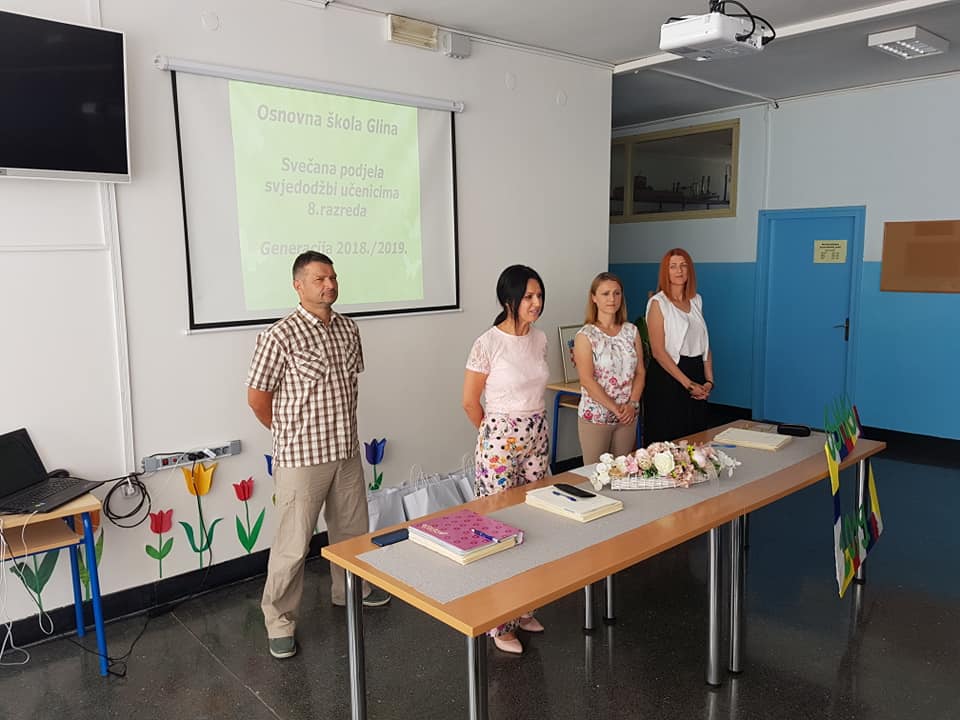 Na kraju nastavne godine pozdravili smo se s još jednom generacijom osmaša. Danas je u školi održana svečana podjela svjedodžbi učenicima 8.razreda kao i potpis prijavnica za upis u srednju školu. Tom prigodom ravnateljica škole uručila je prigodne nagrade učenicima koji su sve razrede završili s odličnim uspjehom. Učenicima smo poželjeli puno uspjeha u daljnjem školovanju te da iz osnovne škole ponesu lijepe uspomene.