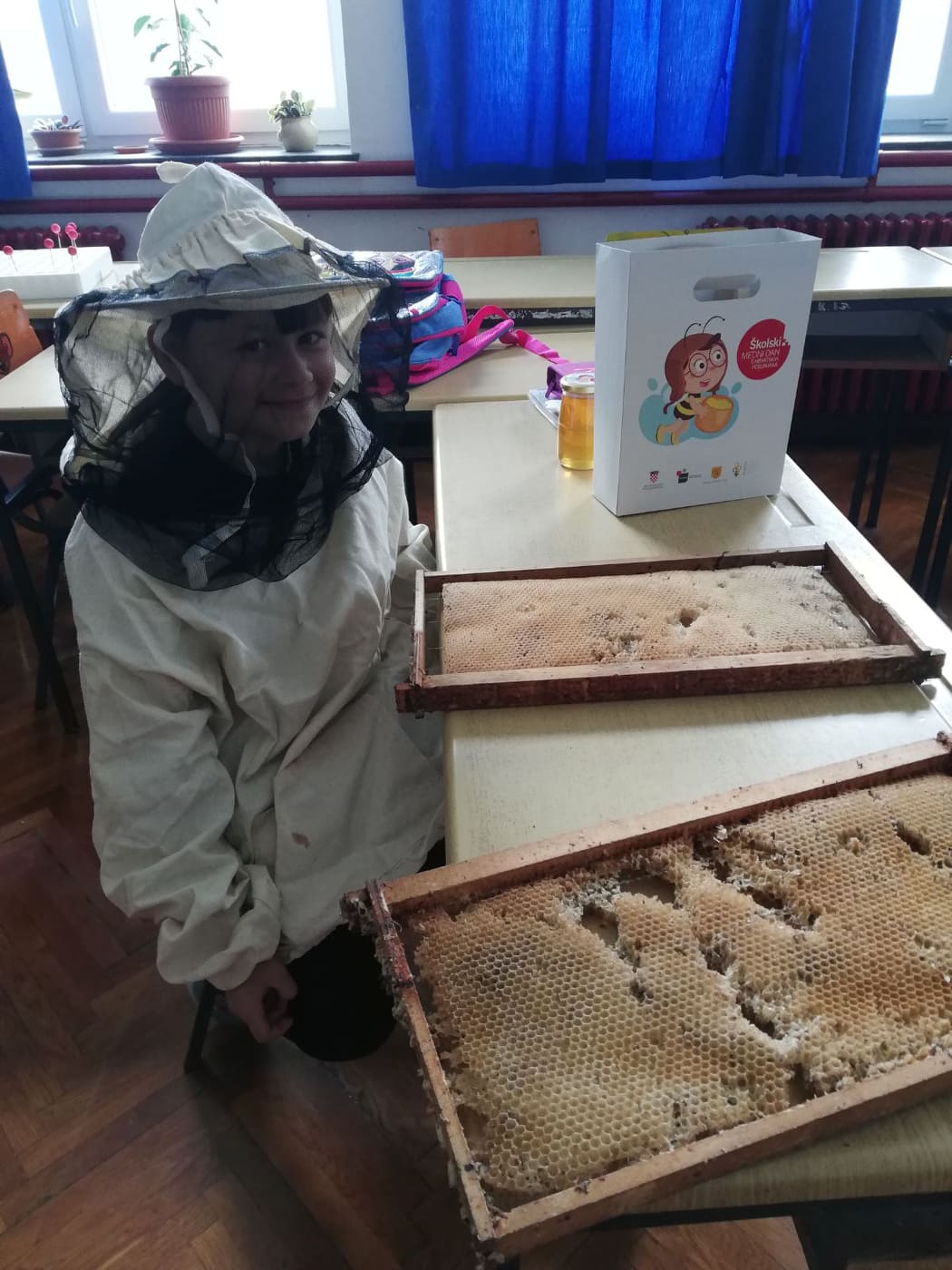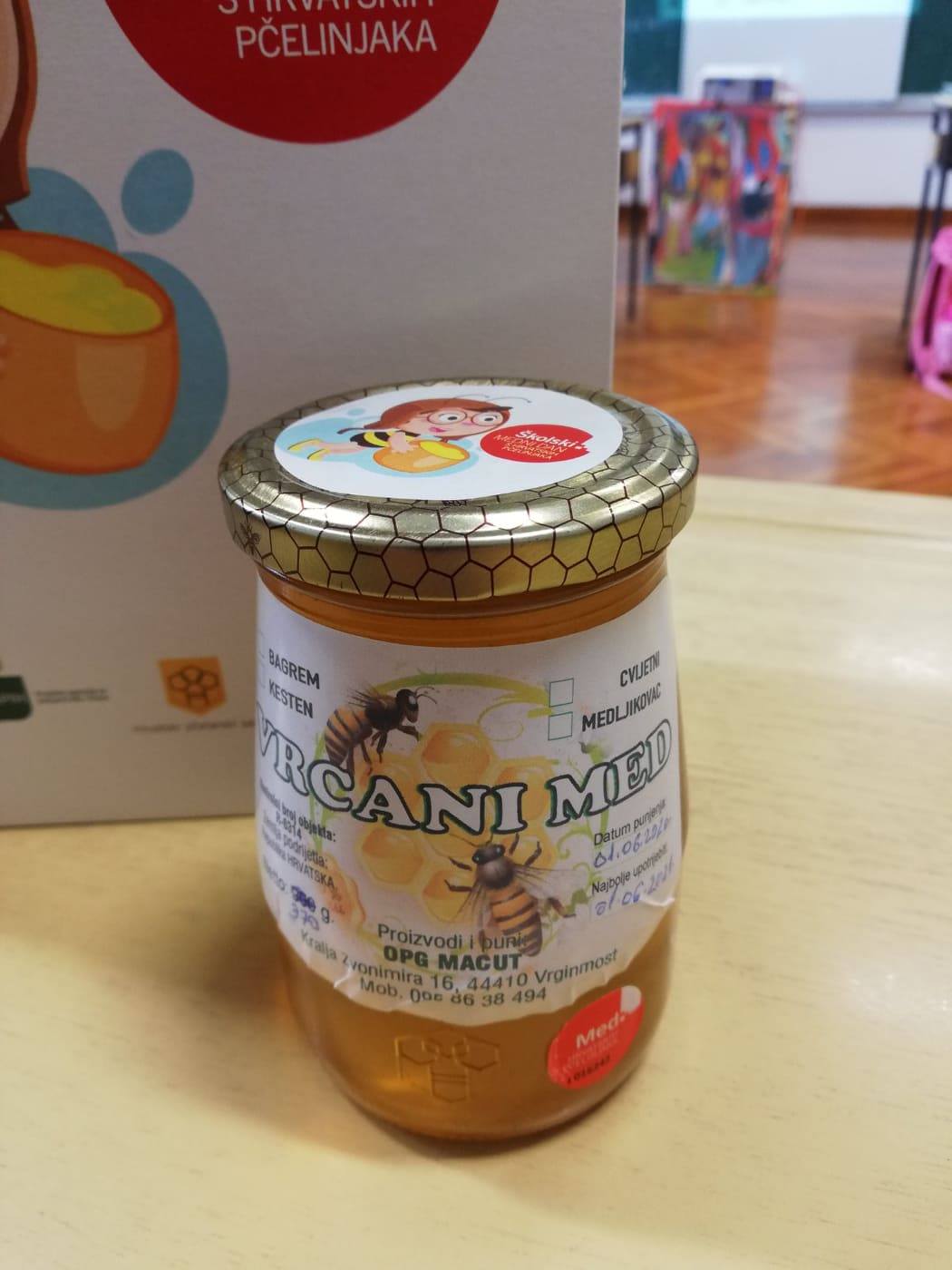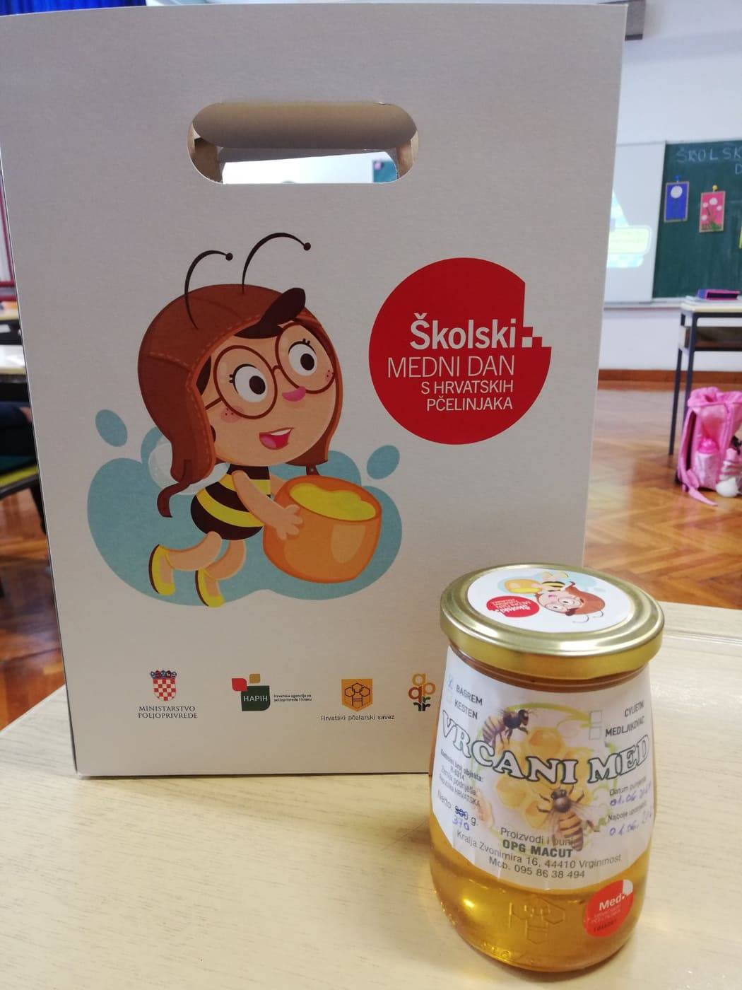Učenici su kroz prezentaciju Cvjetna livada upoznali život pčela, kako nastaje med te vrijednost meda u njihovoj prehrani. Slušali su priču Bubamara i pčela, pjevali o bumbarima i pčelama, a na satu likovne kulture izradili su svoje pčelice od tuljaka papira i kolaža. Budući da zbog epidemiološke situacije nismo mogli ugostiti lokalnog proizvođača meda, gospodina Mraovića, ravnatelj Natko Rupčić učenicima je donio i pokazao opremu koju koriste pčelari i kratkim videom predočio kako nastaje med.