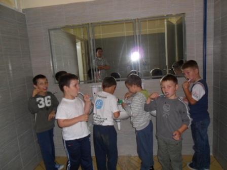 Obavljen je pregled zuba svih učenika i roditeljima je poslana informacija o stanju zuba njihove djece. Demonstrirano je pravilno pranje zuba na modelu. Nakon mliječnog obroka u školi učenici su oprali zube.
