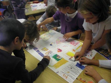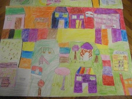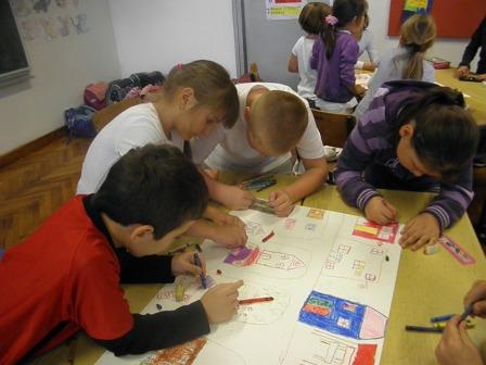 Radionicu je provela učiteljica Barbara Šišinački u 2. razredu. Djeca su u grupama slikala na plakate svoje mjesto. Zatim su docrtravali objekte i detalje u mjestu, točnije sve ono što grad treba sadržavati da djeca u njemu budu sretna. Tako se u našem Gvozdu našao lunapark, Zoološki vrt, bazen… Svako dijete je izabralo svoj objekt i na njega je napisalo sedam potreba. Od potreba su naveli: obitelj, ljubav, njega, potreba za hranom, potreba utažiti žeđ, prijateljstvo, tjelesna aktivnost.