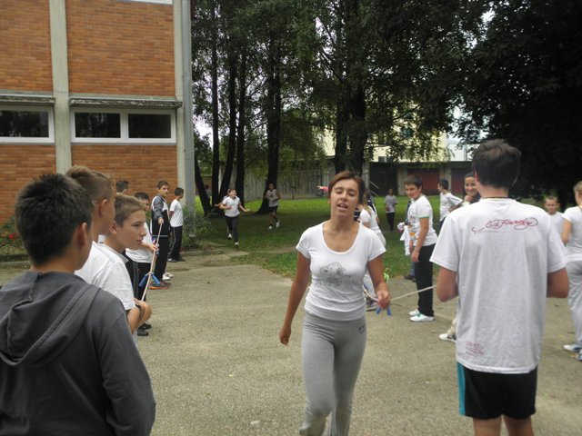 Učenici predmetne nastave su se nakon vježbi zagrijavanja i razgibavanja po skupinama natjecali u krosu.