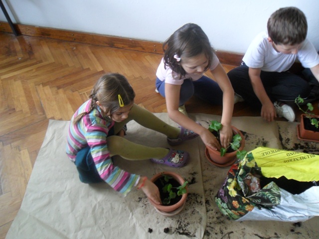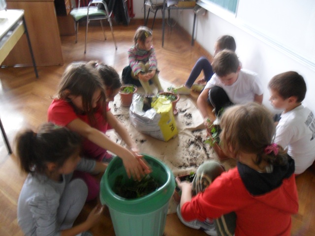 Na slikama što slijede možete vidjeti pripremu cvijeća za slijedeću godinu. Učenici sade sadnice cvijeća i stavljaju na prozor učione gdje će imati dovoljno svijetlosti, vlage i topline tijekom hladne zime.