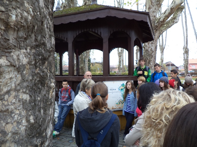 Naše prvo odredište bio je glinski park gdje smo u pratnji našeg sugrađana Igora Mrkolj doznali više o parku u doba Napoleona, Vojnoj krajini te okolnim zgradama koje su ostale iz tog vremena.