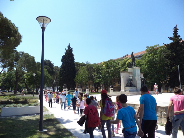 Iz Pule smo autobusom krenuli prema Fažani, gdje nas je čekao katamaran za NP Brijune. Vožnja katamaranom je bilo posebno iskustvo jer su se neki od nas prvi puta vozili katamaranom.