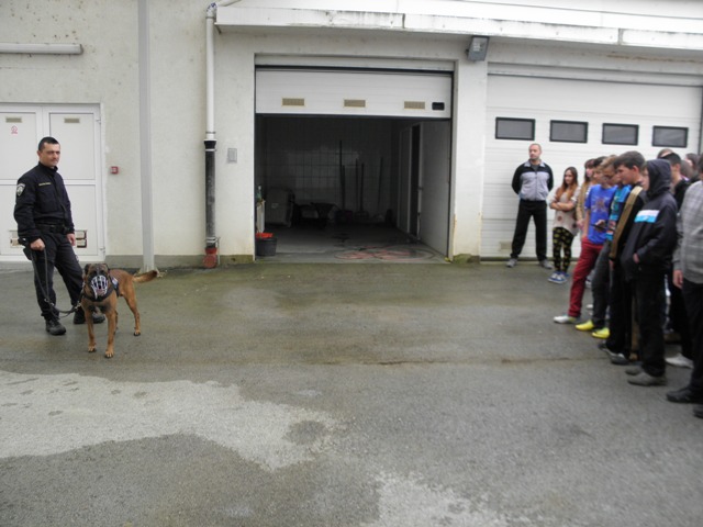 Na kraju smo gledali dokumentarni film o policiji. Kada smo završili obilazak policajci su nas počastili grickalicama. Najljepše mi je bilo kada smo gledali policijskog psa Rexa.