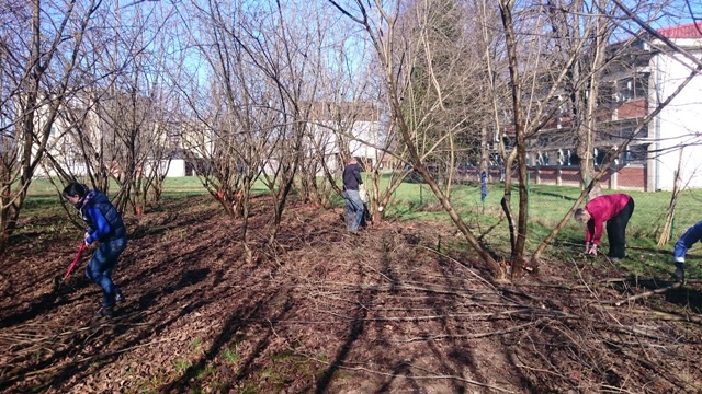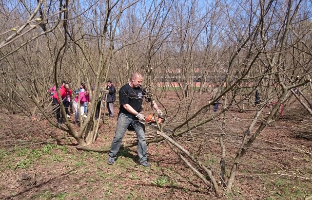 Djelatnici Osnovne škole Gvozd udružili su snage naoružani škarama, motornim pilama i tačkama i krenuli u 8 i 30 u akciju uređenja voćnjaka. Naše vrijedne ruke usmjeravali su i koordinirali djelatnici Šumarije Gvozd. Posebnu pažnju poklonili smo prorjeđivanju unutarnjeg dijela stabla kako bi lijeska dobila dovoljno svjetlosti. Tako su jedni motornim pilama uklanjali suvišne izboje, drugi su škarama rezali suvišne i suhe grane, a ostali su nosili grane i čistili okoliš u voćnjaku. Tijekom rada osjetila se pozitivna atmosfera i oduševljenje među djelatnicima uviđajući kako naš voćnjak izgleda sve ljepše i uređenije.