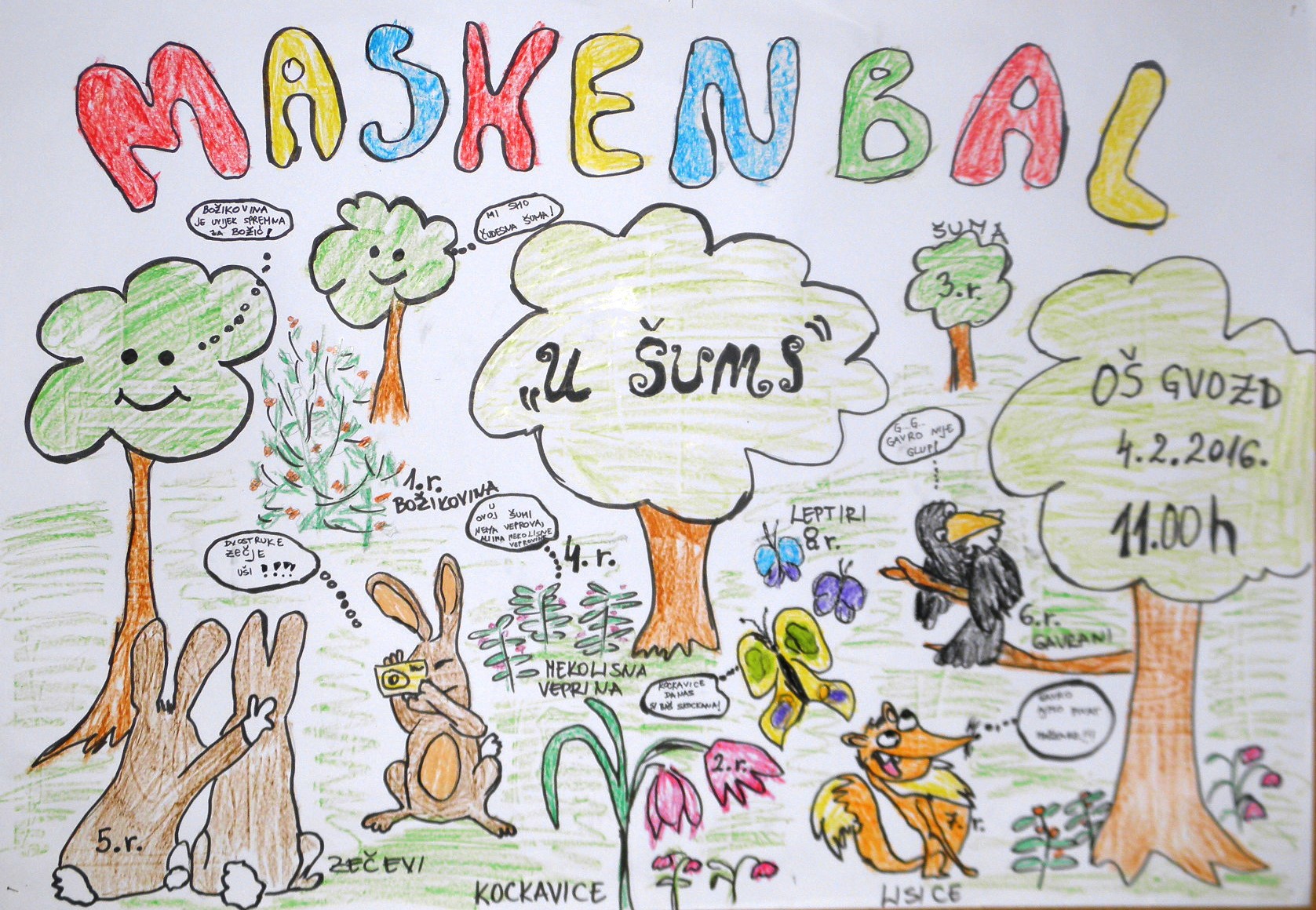 Zaštićene vrste biljnog i životinjskog svijeta učenici su predstavili svojim maskama. Božikovina, mekolisna veprina, kockavica, veseli zečići, šareni leptiri, živahni gavranovi, lukave lisice, marljive pčelice - bilo je uistinu svakakvih maski.