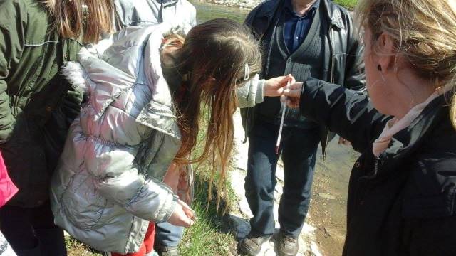 Na rijeci Trepči mjerili su temperaturu vode i vidjeli uređaj za automatsko očitavanje vodostaja rijeke (solarni kolektor).