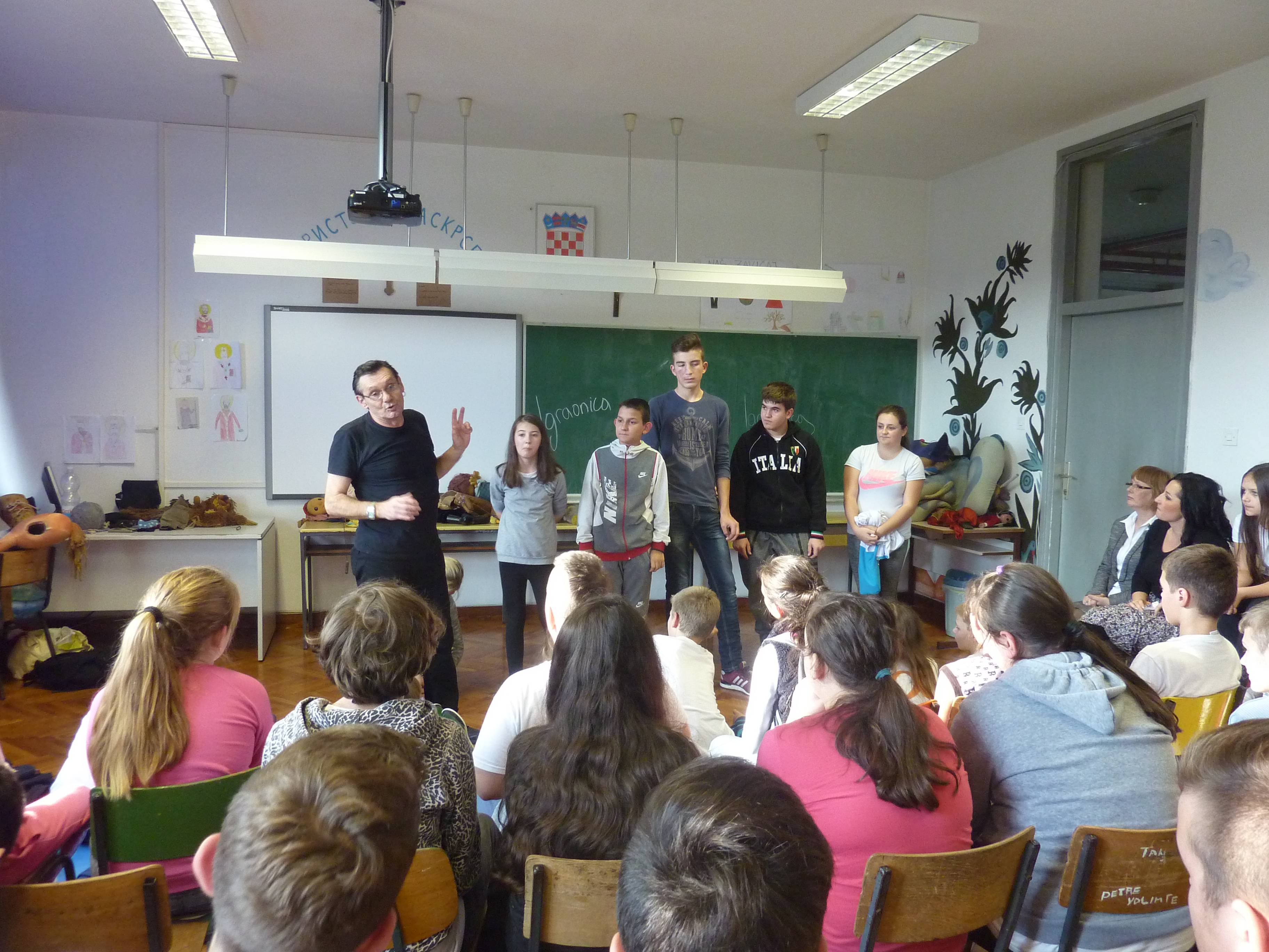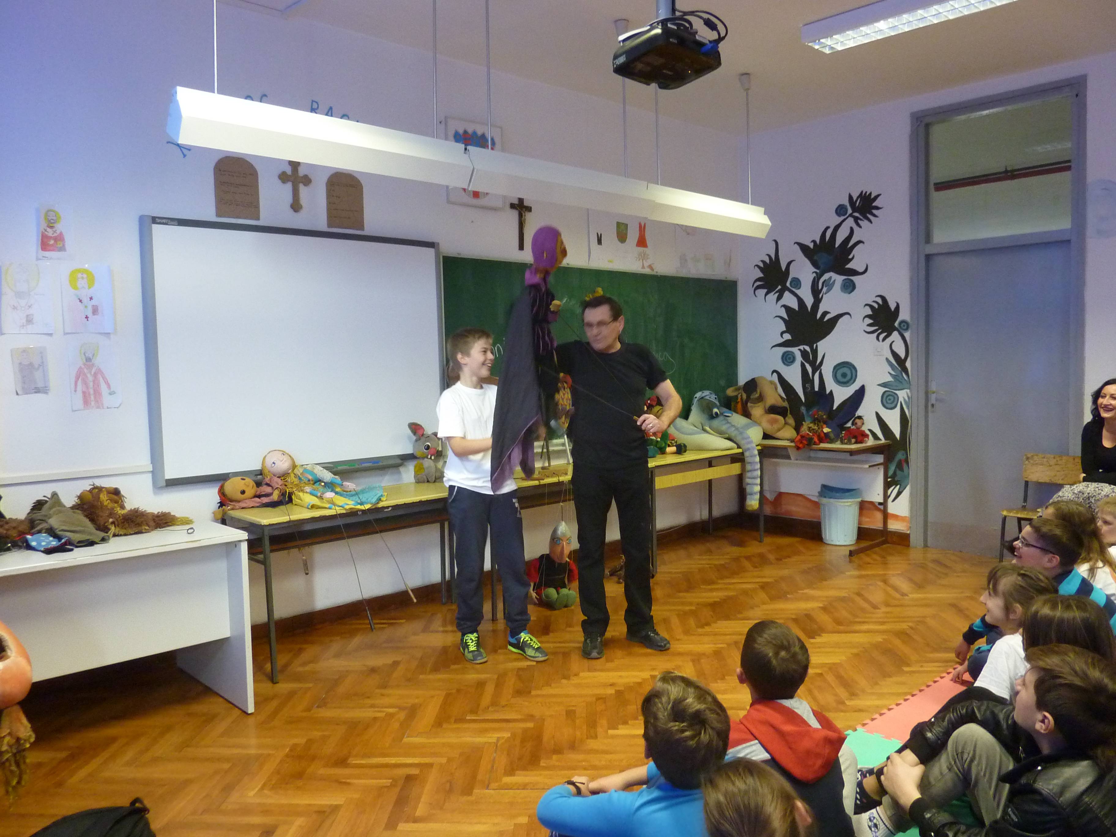 Lutke velike i male, lutke na koncu (marionete), ručne lutke (ginjol, zjevalica), lutke na štapu (javajke) i maske družile su se s učenicima predmetne nastave. Lutkar je prvo upoznao učenike sa svim lutkama, principom izrade, podrijetlom nastanka te samim načinom funkcioniranja lutaka.