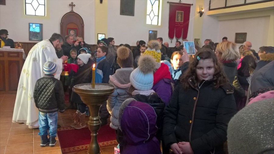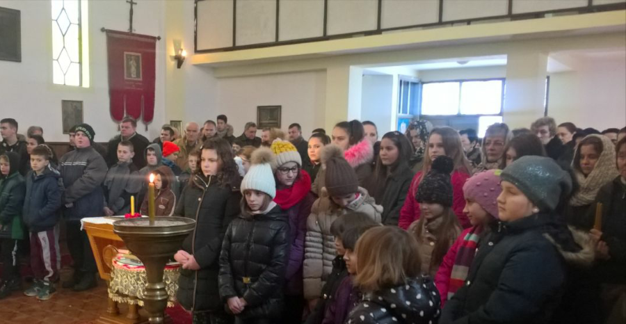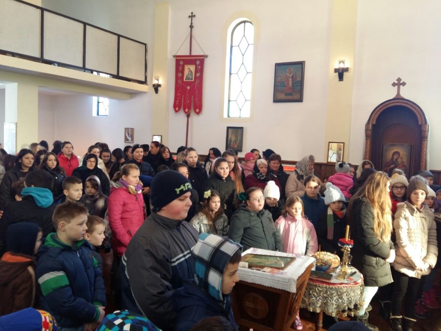Hram je bio ispunjen djecom i mladima, i veći broj njih pristupilo je Svetoj tajni pričešća. Od školaraca recitirani su stihovi u slavu i čast Gospoda Boga i njegovog ugodnika Svetog Save. Nakon Svete Liturgije podijeljeni su paketići za svu djecu koja su bila prisutna u hramu.