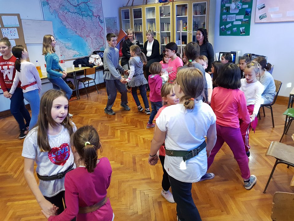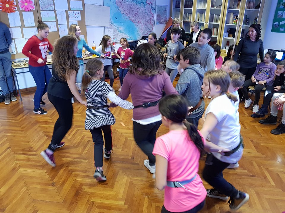 Na kraju druženja, naši učenici su svojim prijateljima pokazali što su ove godine naučili na folklornoj skupini. Želju da i njih ponešto naučimo prekinulo je zvono za završetak nastave, iznenađujući sve kako vrijeme brzo prođe u ugodnom i veselom radnom okruženju.