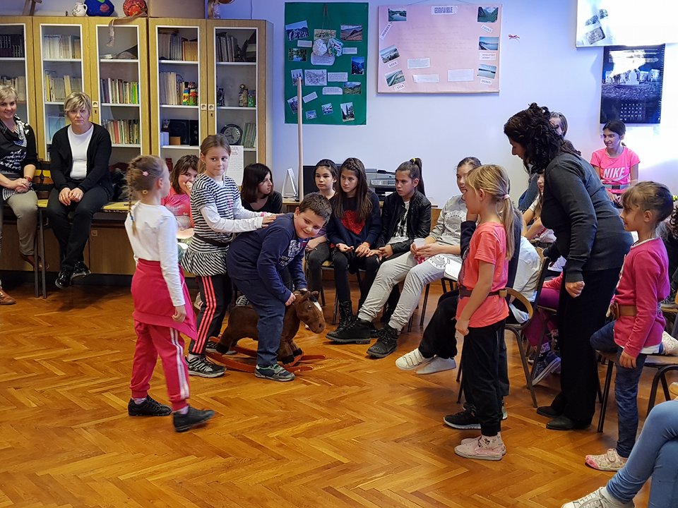 Učenici drugog i trećeg razreda naše škole izveli su dramatizaciju narodne priče „Svijetu se ne može ugoditi“, te sve prisutne nasmijali prikazujući neobične načine putovanja oca i sina.