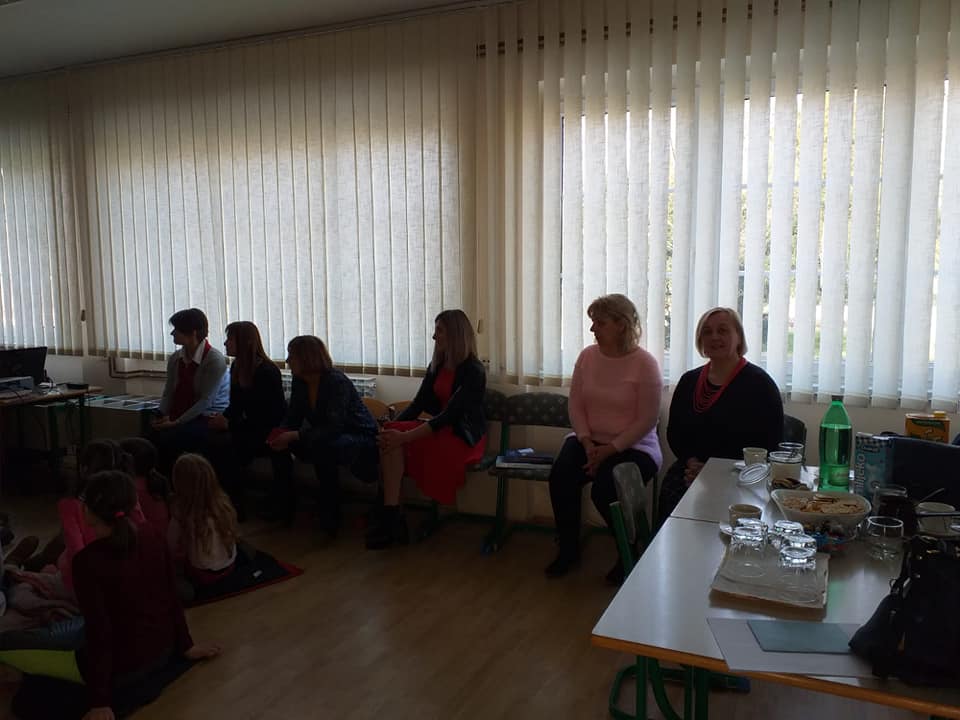 Poslije toga, naša gošća gospođa Jasna Horvat, ravnateljica OŠ Marija Gorica i koautorica Rječnika kajkavske ikavice donjosutlanskog područja, održala je zanimljivo predavanje o hrvatskom leksiku koji je jedinstven i poseban za donjosutlansko područje. Bilo je veoma zanimljivo i inspirativno gledati i slušati naše učenike kako upoznaju nešto novo i njima neobično, pažljivo slušaju gošću i pokušavaju ponoviti za njom neke riječi. Idućih dana gospođa Jasna nam se javila ovako:“ U prekrasnom prostoru knjižnice i čitaonice bio je to susret s djecom i njihovim učiteljicama iz OŠ Gvozd te smo u veselom i poticajnom ozračju pronašli puno materinskih riječi koje nas obilježavaju i povezuju u svakodnevnoj komunikaciji.