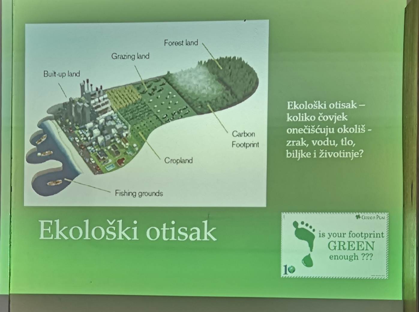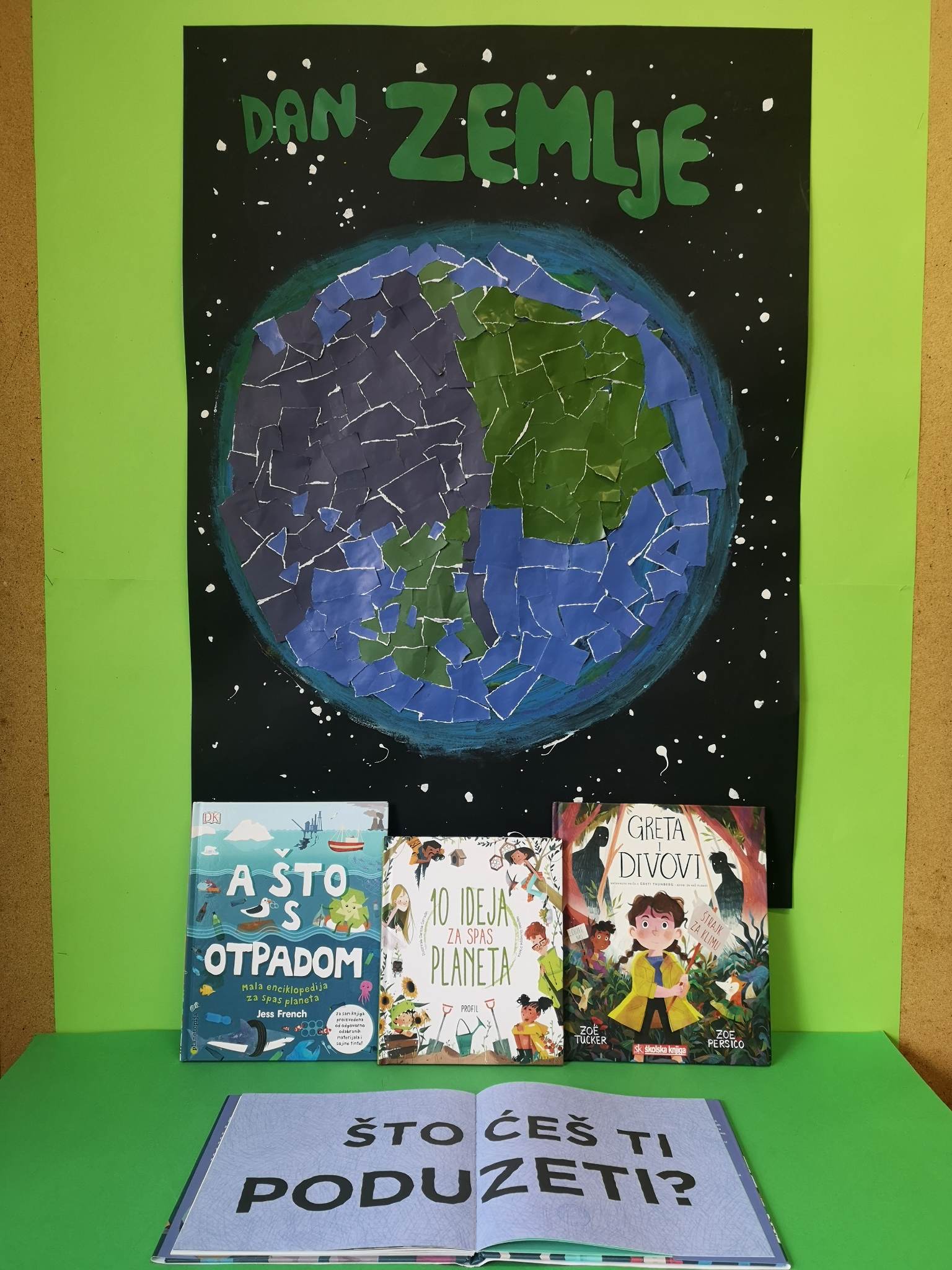 U suradnji s učiteljicom trećeg razreda i učiteljicom prirode i biologije učenici su upoznati s pojmom ekološki otisak, izradili su i anketu koliki je njihov ekološki otisak na naš planet. Nakon toga ponovili kako ispravno rezvrstavati otpad kroz natjecanje u grupama. Od knjižničarke su dobili preporuke što čitati kako bi pridonijelu očuvanju planeta Zemlje.
