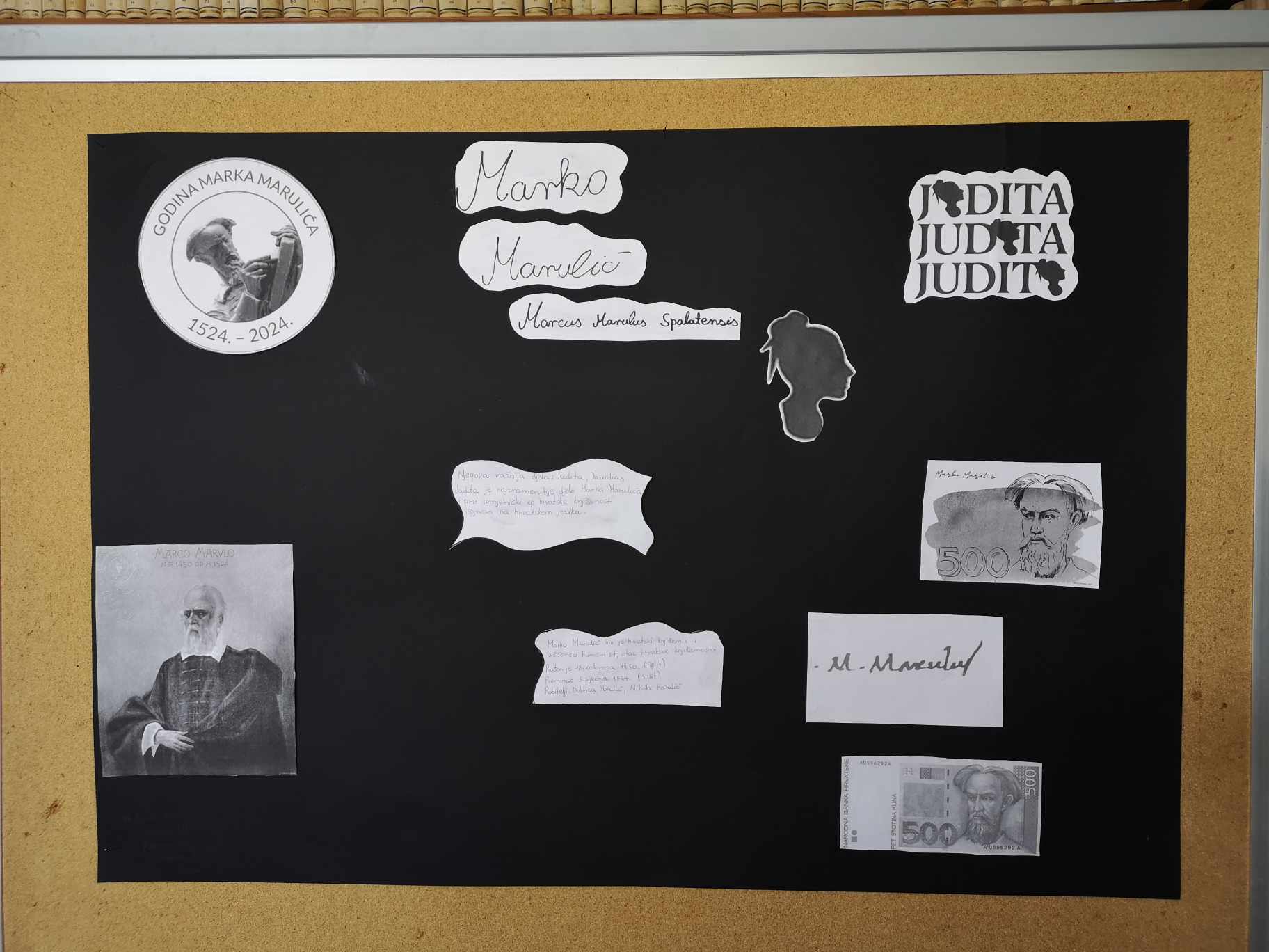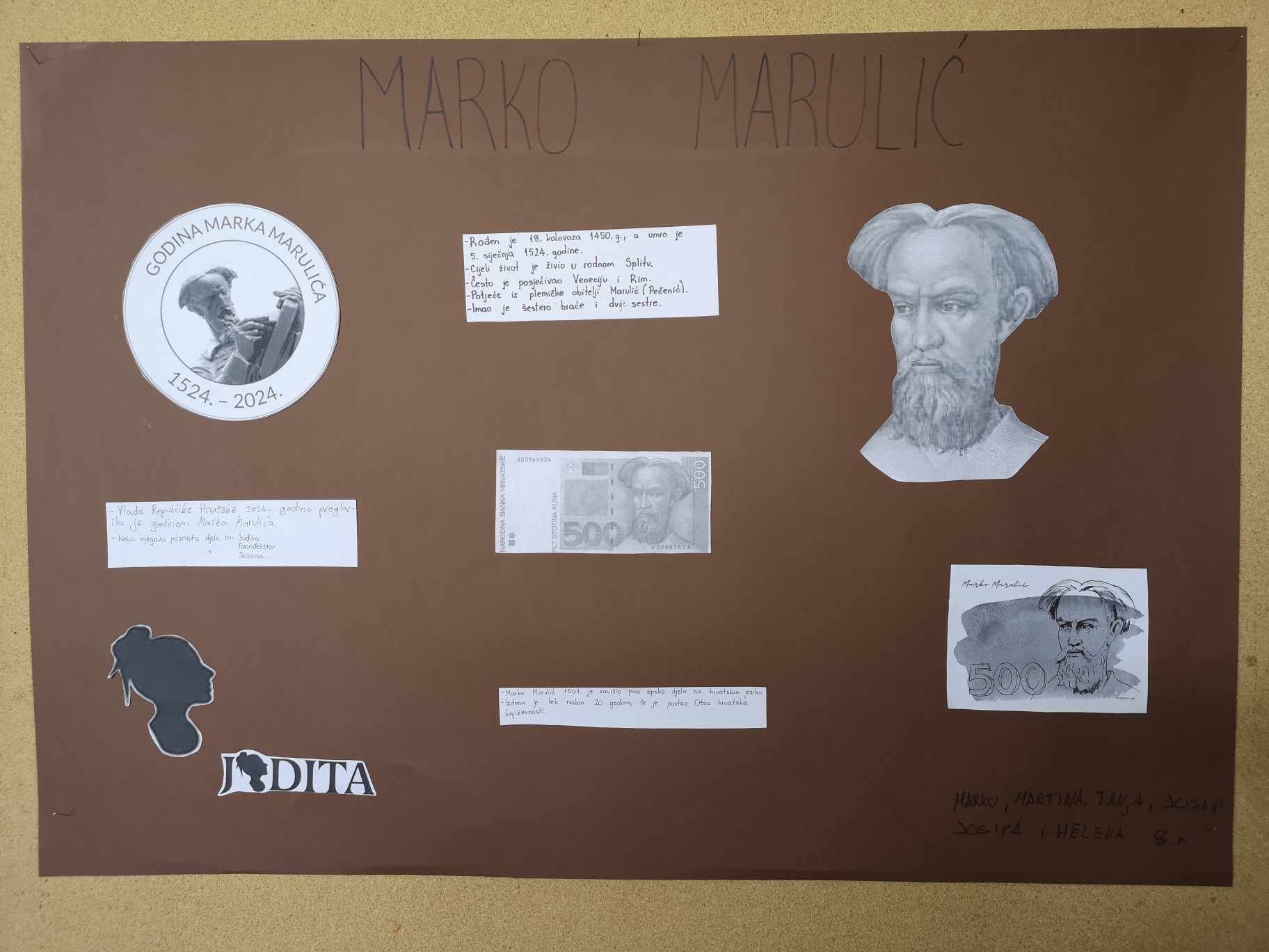 U školskoj je knjižnici održan sat hrvatskog jezika na kojem su učenici osmog razreda upoznati sa životom i stvaralaštvom Marka Marulića. Učenici su rješavali kvizove i izradili plakate na temu 2024. Godina Marka Marulića.