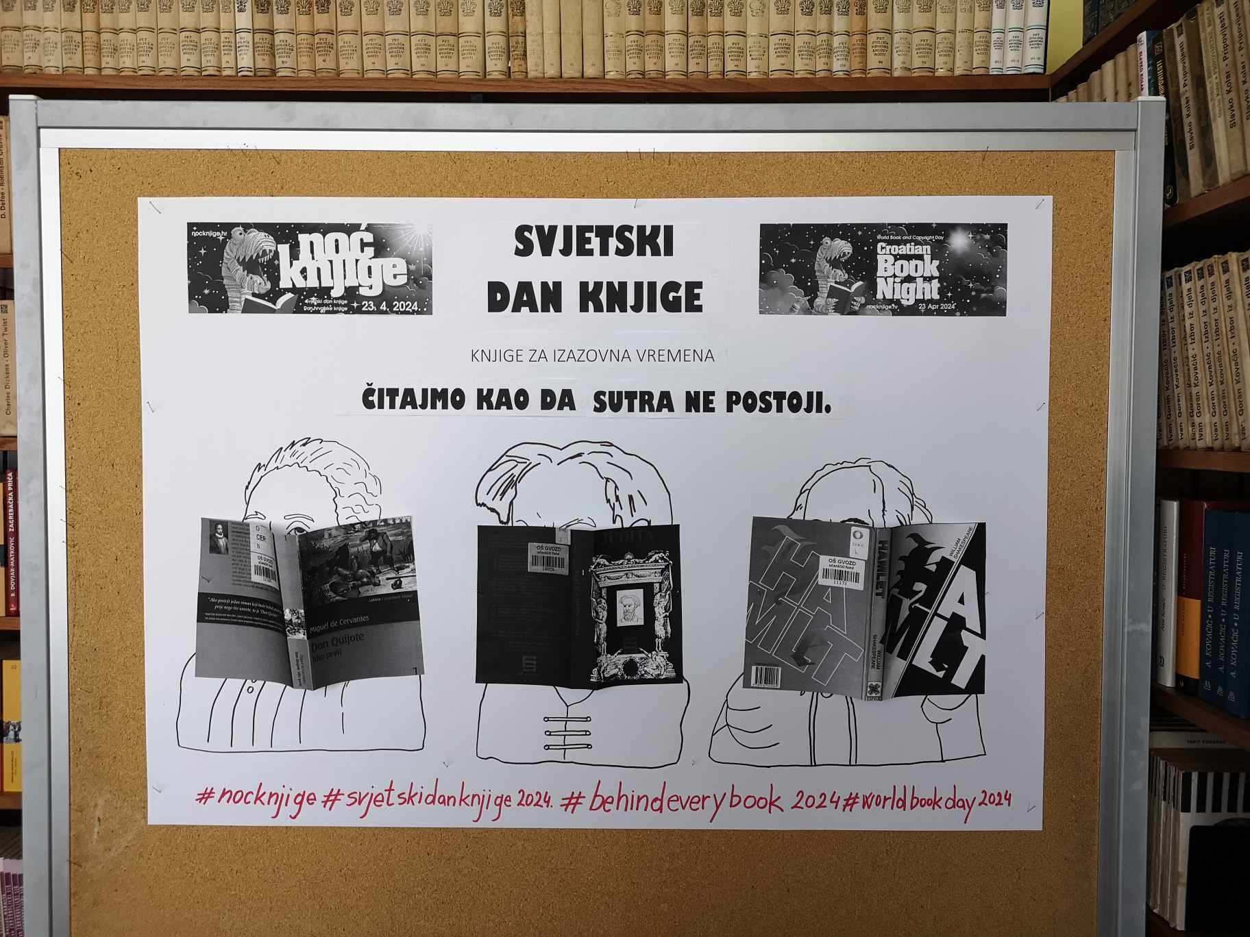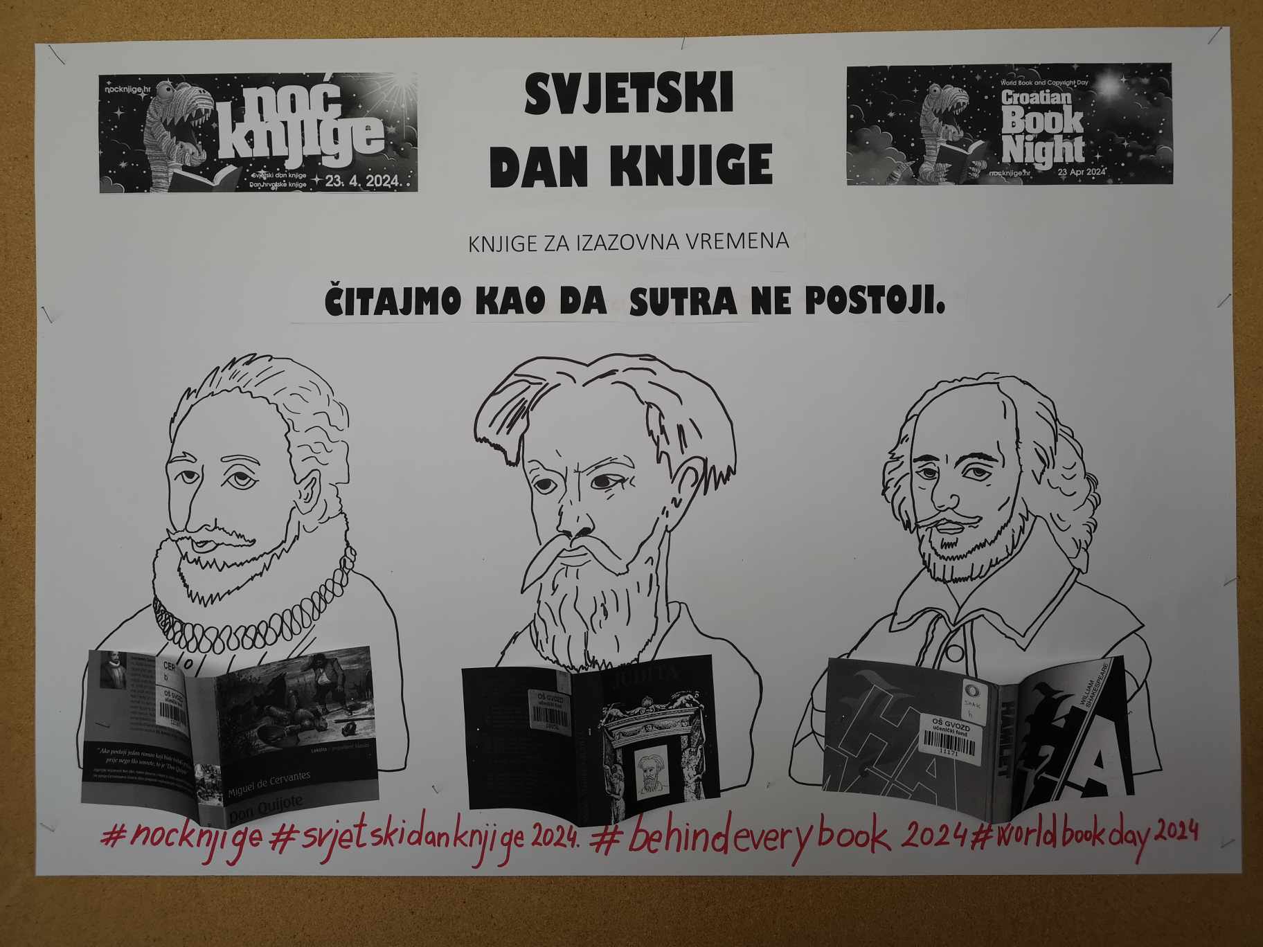 Takvi autori su velikani svjetske književnosti Miguel de Cervantes, Marko Marulić i William Shakespeare i posnosno stoje na našem plakatu dajući nam svoja djela da nas vode kroz izazovna vremena.