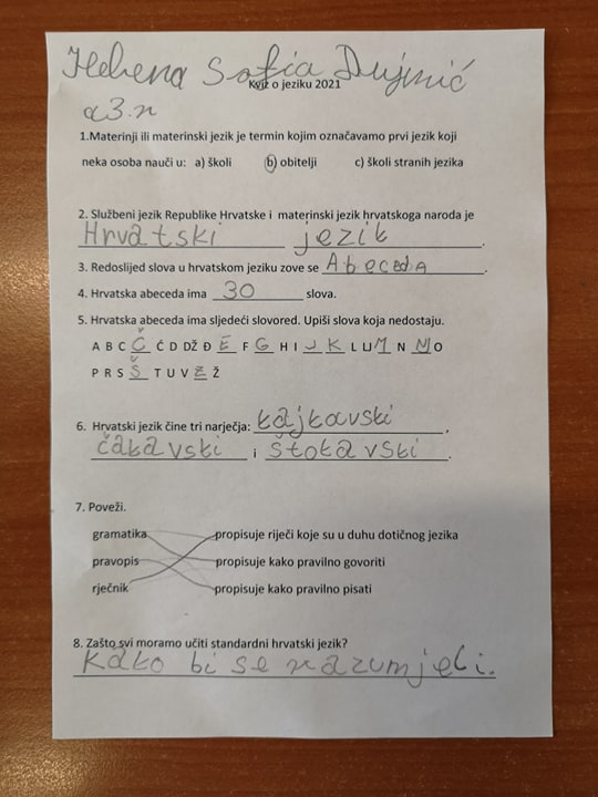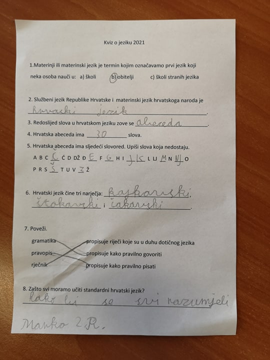 Povodom obilježavanja Dana materinskog jezika učenici su pogledali prezentaciju i riješili kviz o svome materinskom jeziku.